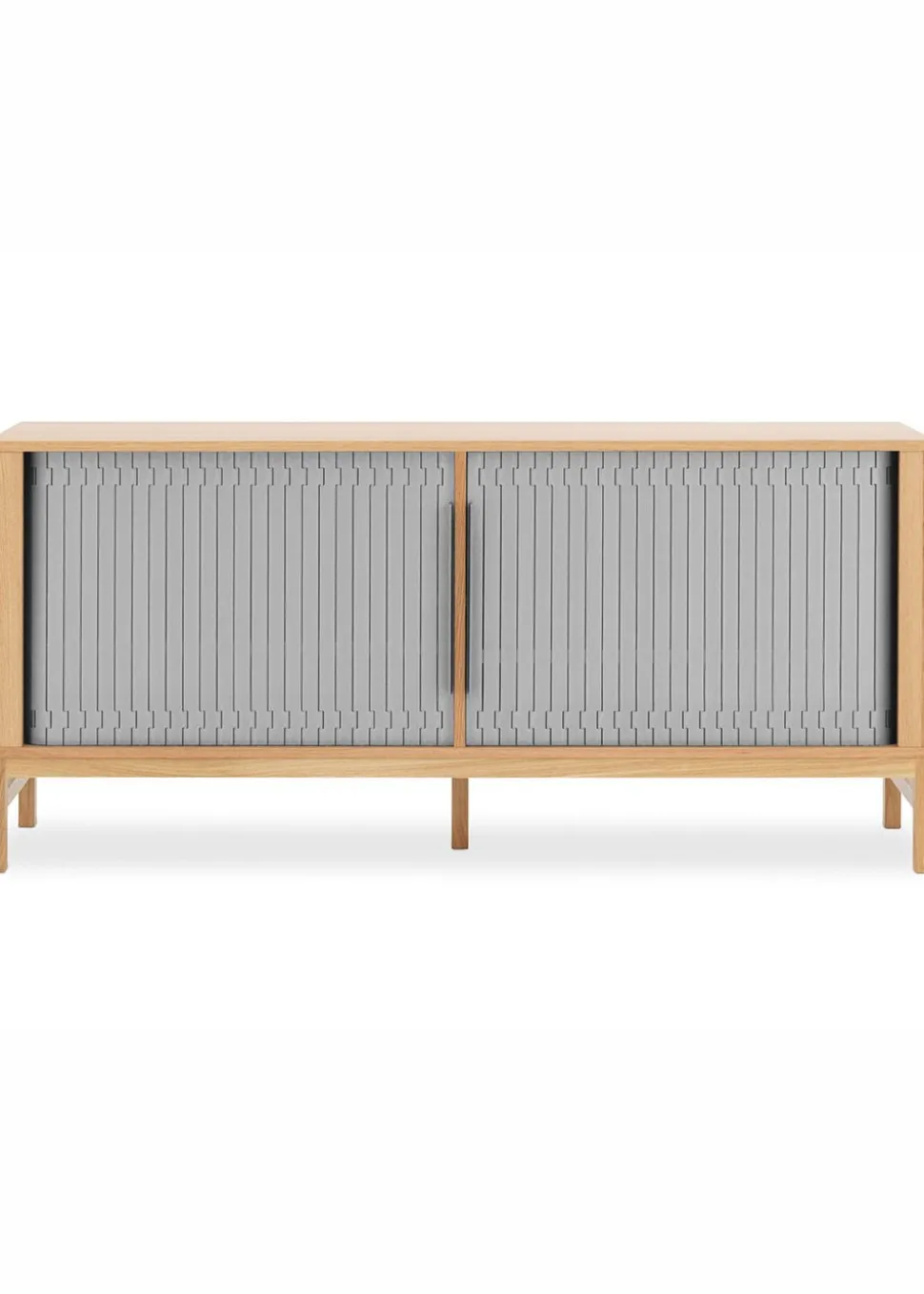 Die Jalousi-Serie ist inspiriert von Armbanduhren, Förderbändern und Möbeln der 50er Jahre. Mit dieser Idee hat Simon Legald ein funktionales Sortiment an Stauraummöbeln geschaffen. Alle Designs der Serie werden mit Rolltoren in schönen Farben geliefert.