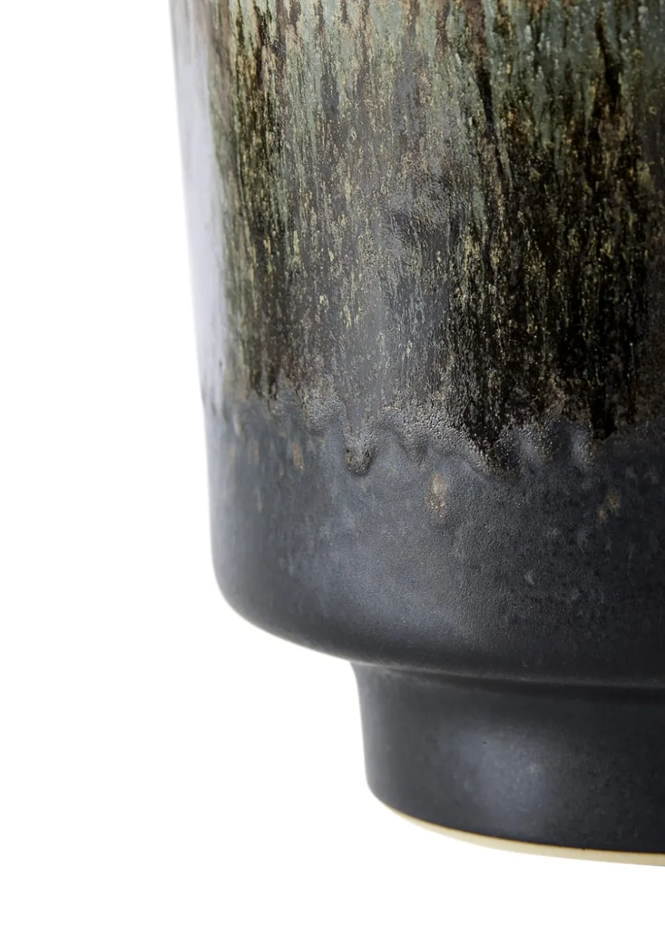 Das Lago-Glas von Muubs ist mehr als nur ein Gefäß; es ist eine Hommage an die bezaubernden Seenlandschaften der Natur. Mit einer Leidenschaft für das Organische geschaffen, ist jedes Gefäß eine einzigartige Verschmelzung von Kunst und Handwerkskunst. Die sorgfältig entworfene organische Form findet ihre perfekte Entsprechung in dem leichten Sockel, der ein Gefühl von Eleganz und Leichtigkeit vermittelt. Das Gefäß ist mit einer farbenprächtigen Glasur verziert, deren Schattierungen von tiefen, dunklen Tönen am Boden bis hin zu helleren, einladenden Farben an der Spitze reichen und die atemberaubende Schönheit des Wasserspiegels eines Waldsees widerspiegeln.