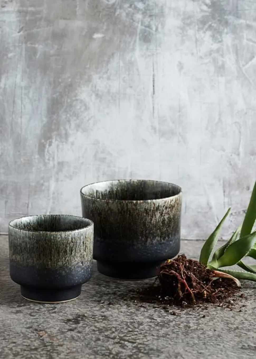 Das Lago-Gefäß ist nicht nur eine Augenweide, sondern auch ein Wunderwerk der Funktionalität. Die reaktive Glasur verleiht jeder Kanne einen einzigartigen Charakter, mit Farben und Strukturen, die sich je nach Lichteinfall und -intensität verändern und spielen. Dieser dynamische Effekt macht jeden Topf zu einem lebendigen Kunstwerk, das sich mit der Atmosphäre des Raumes verändert und wächst. Der Lago-Topf eignet sich perfekt für die Bepflanzung von Innenräumen, von aromatischen Kräutern bis hin zu üppigem Grün, und bringt Leben und Charakter in jeden Raum. Sie können ihn allein aufstellen, um seine Schönheit zur Geltung zu bringen, oder ihn mit anderen Elementen aus der Lago-Serie kombinieren, um eine harmonische und abgeschiedene Oase in Ihrem Zuhause zu schaffen.