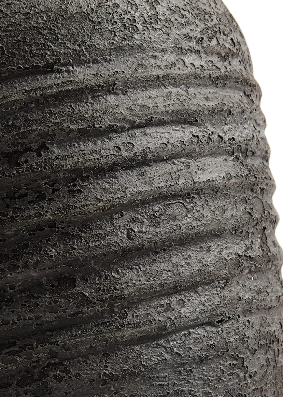 Das Melancholia-Gefäß ist nicht einfach nur ein Gefäß, sondern eine skulpturale Ergänzung für Ihr Zuhause, die die Natur auf elegante Weise ins Haus holt. Verwenden Sie den hohen Topf als markanten Solisten im Raum oder kombinieren Sie ihn mit Zweigen, um die Illusion von Höhe und Leichtigkeit zu erzeugen. Obwohl der Topf nicht wasserdicht ist, eröffnet sein einzigartiges Design eine Welt von Stylingmöglichkeiten. Stellen Sie ihn in eine minimalistische Umgebung für einen dramatischen Look oder lassen Sie ihn einen Raum mit Texturen und warmen Farben auflockern. Das Gefäß Melancholia ist eine Einladung zum Experimentieren mit der Inneneinrichtung, wo seine raue Eleganz und handwerklichen Details jedem Zuhause eine persönliche Note verleihen können.