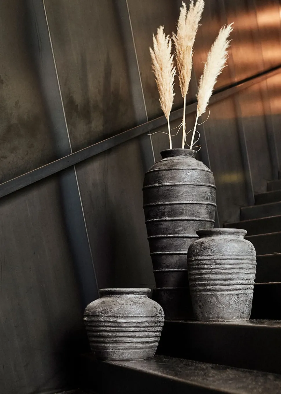 Tauchen Sie ein in eine Welt zeitloser Eleganz mit dem Gefäß Melancholia von Muubs, einer Kollektion, die die Schönheit der Handwerkskunst durch Terrakotta feiert. Jede Kanne ist ein Meisterwerk, handgedreht von erfahrenen Handwerkern, die jedem Stück einen besonderen Charakter und eine Seele verleihen. Die einzigartige Oberflächenbehandlung der Melancholia-Töpfe erzählt eine Geschichte von Hingabe und Finesse: Eine erste Schicht schwarzer Farbe wird aufgetragen und sanft geschliffen, dann wird sie durch eine Schicht edlen Graus ergänzt, die wiederum geschliffen wird, um ein atemberaubendes Finish zu erzielen. Der letzte Schliff, eine Schutzschicht, sorgt dafür, dass die Schönheit jedes Gefäßes über die Zeit erhalten bleibt. Auf diese Weise entsteht nicht nur ein Gefäß, sondern ein Kunstwerk, das jedem Raum Tiefe und Charakter verleiht.