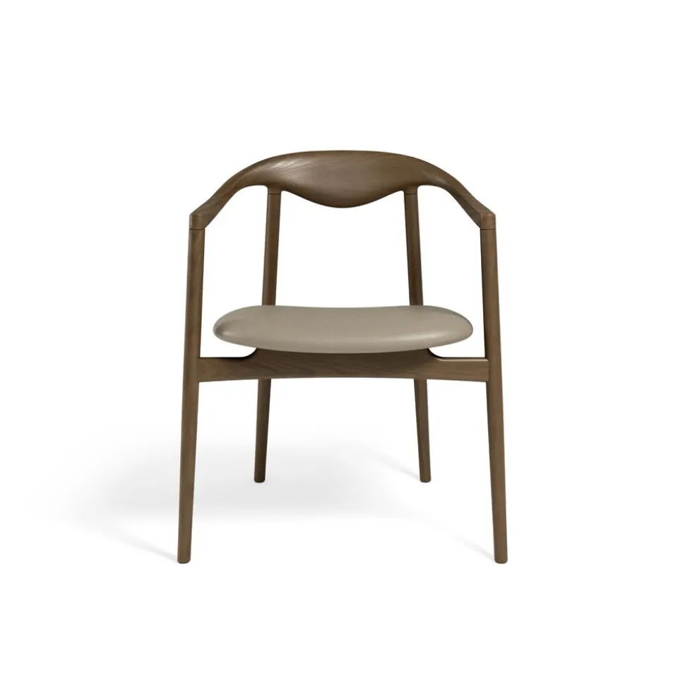 Durch modernes CNC-Fräsen und traditionelle handwerkliche Formgebung und Verarbeitung erhält der Stuhl sein einzigartiges Aussehen. Der Esszimmerstuhl passt perfekt in ein modernes Esszimmer, wo er eine einzigartige Ergänzung der Einrichtung darstellt.