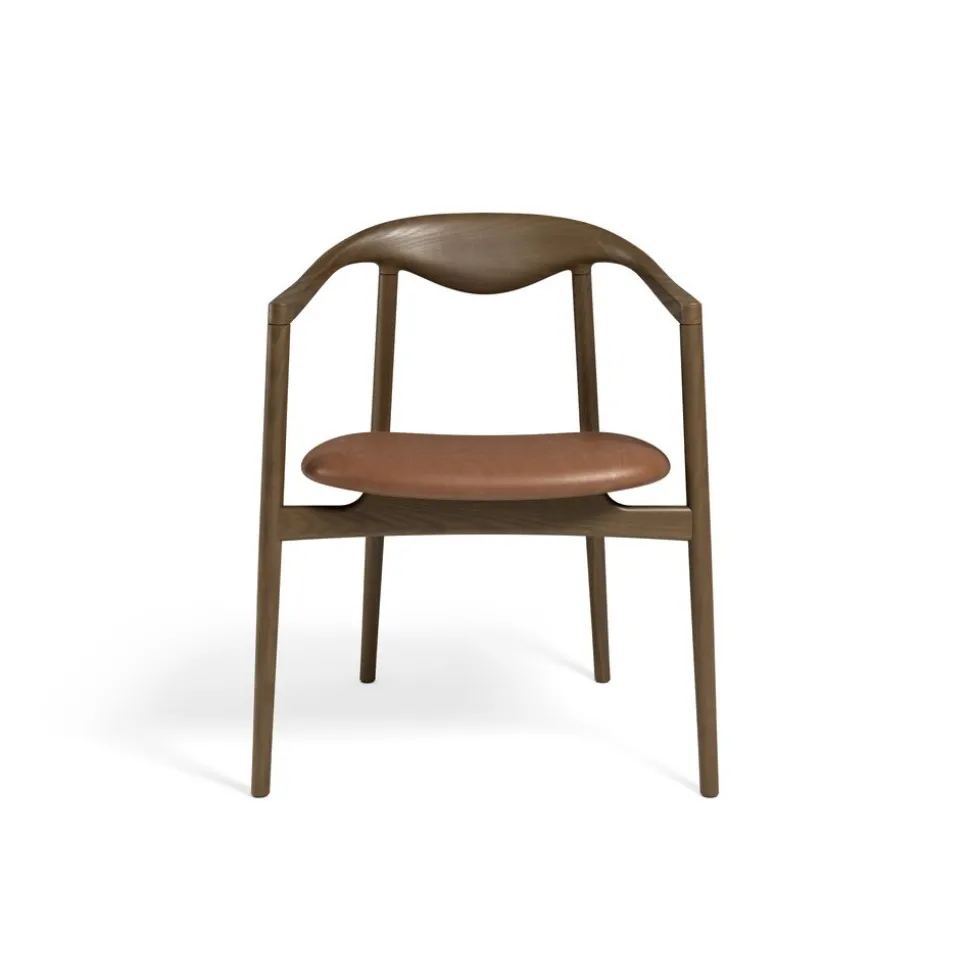 Durch modernes CNC-Fräsen und traditionelle handwerkliche Formgebung und Verarbeitung erhält der Stuhl sein einzigartiges Aussehen. Der Esszimmerstuhl passt perfekt in ein modernes Esszimmer, wo er eine einzigartige Ergänzung der Einrichtung darstellt.