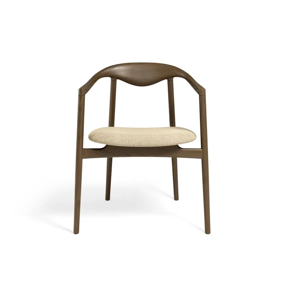 Durch modernes CNC-Fräsen und traditionelle handwerkliche Formgebung und Verarbeitung erhält der Stuhl sein einzigartiges Aussehen. Der Esszimmerstuhl passt perfekt in ein modernes Esszimmer, wo er eine einzigartige Ergänzung der Einrichtung darstellt.
