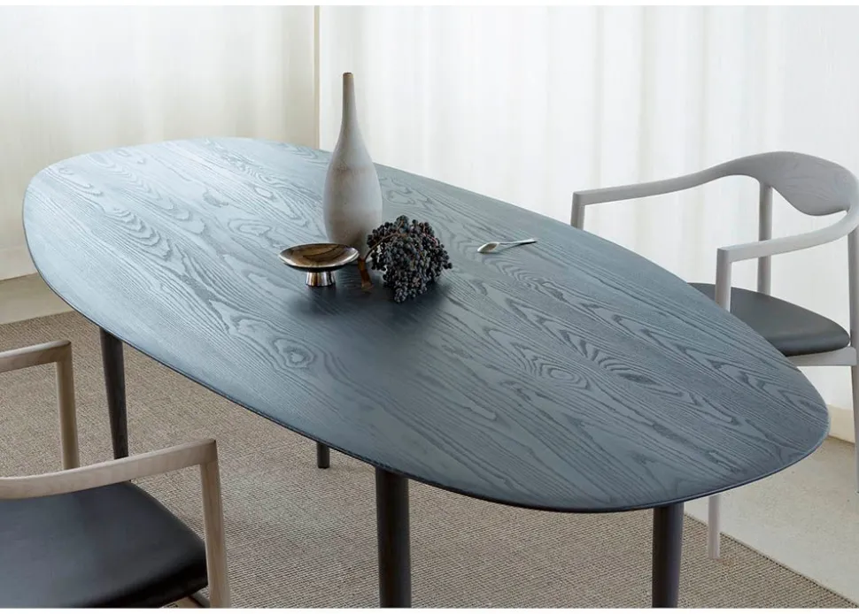 aus massiver Eiche. Der JARI Esstisch ist ein ausgewogenes Verhältnis zwischen skulpturaler Schönheit und flexibler Funktionalität. Das Design der Tische kann die Uniformität des Interieurs aufweichen und mehr Leben in jeden Raum bringen.