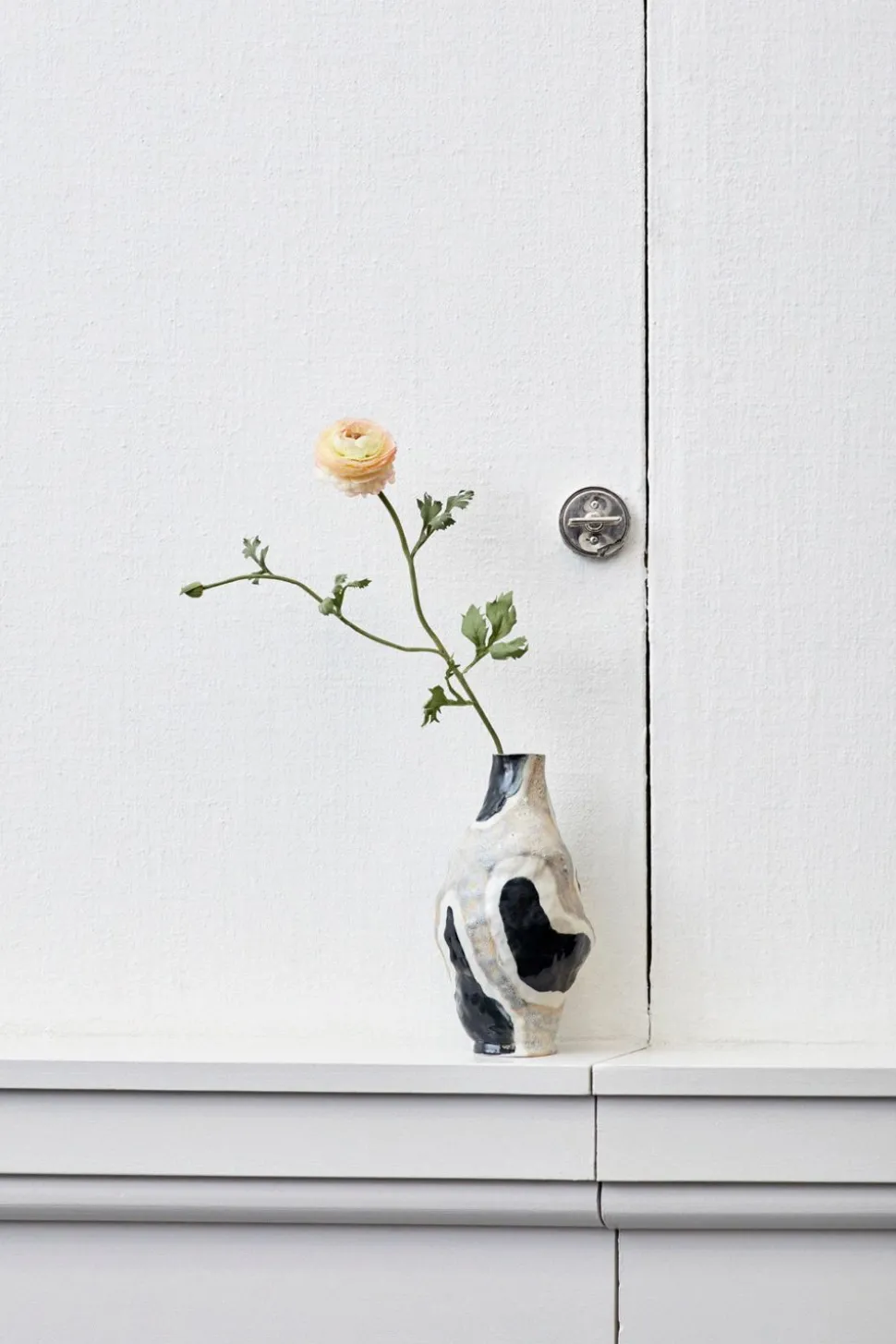 Geschaffen und geformt aus Steinzeug in einzigartigen und organischen Formen, mit farbenfrohen und einzigartigen Glasuren. Jessica Hans‘ schrullige Vasen haben einen verspielten Ausdruck, der ein schiefes und ungleichmäßiges Design hat, das der Wohnung Kontrast und Persönlichkeit verleiht.