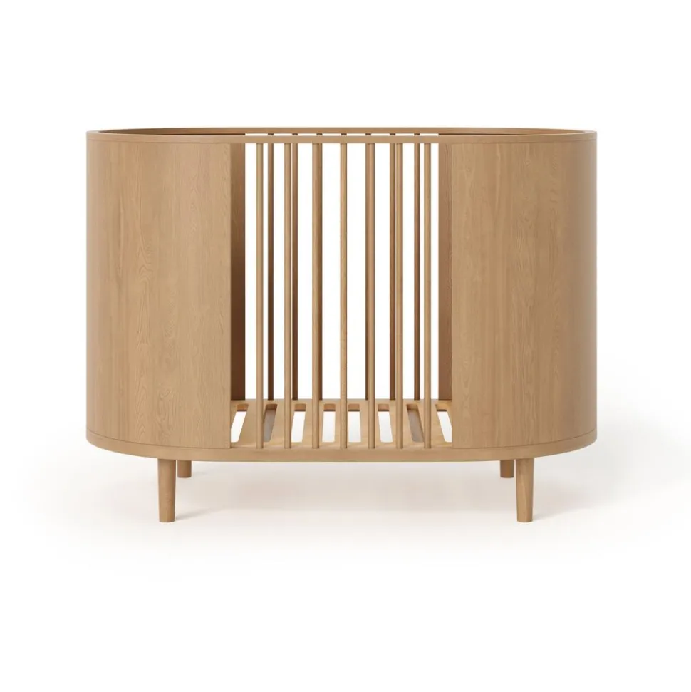 Das Babybett Kai von Kas Copenhagen ist ein elegantes und zeitloses Bettchen, in dem Ihr Kind sicher und bequem liegt. Es ist aus massiver Eiche gefertigt, mit weichen, abgerundeten Kanten und einem harmonischen Design, das sich in jedes Kinderzimmer einfügt. Die verstellbare Höhe sorgt für optimale Ergonomie für Eltern und Kind, während das luftige Rahmendesign für ein leichtes und luftiges Gefühl sorgt.