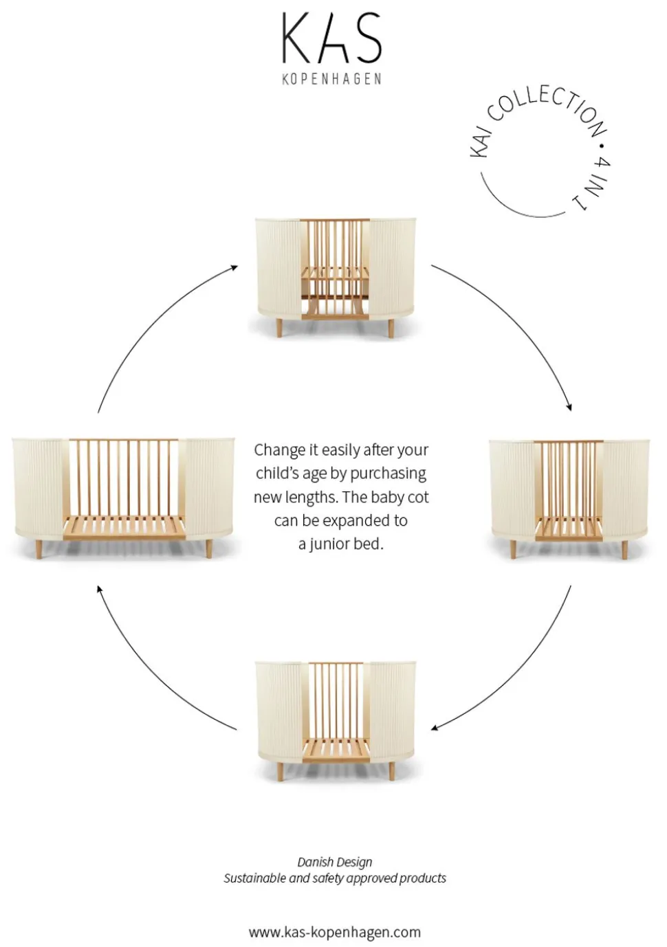 Das Bett wächst mit Ihrem Kind mit und lässt sich problemlos an die Entwicklung Ihres Kindes anpassen. Wenn Ihr Kind alt genug ist, um selbständig in das Bett hinein- und herauszukrabbeln, kann eine Seite entfernt werden. Wenn Ihr Kind wächst, können beide Seiten leicht entfernt werden, und neue Seitenteile und ein neuer Lattenrost können hinzugefügt werden, um das Bett in ein Juniorbett umzuwandeln, so dass es noch viele Jahre lang verwendet werden kann.