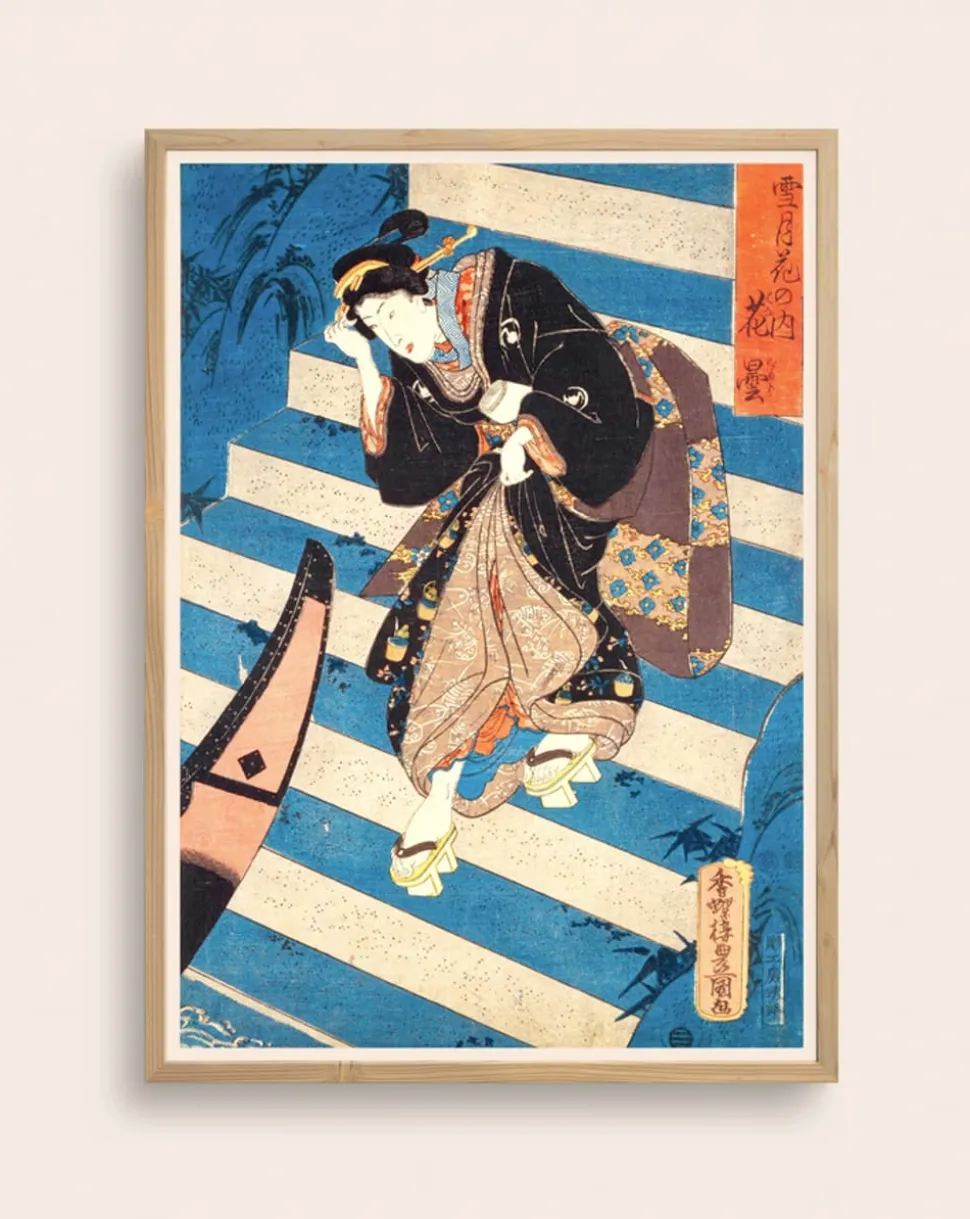 Schöne Japanerin auf der Treppe von . Gedruckt auf 240g mattes Qualitätspapier mit tollen Farben.
