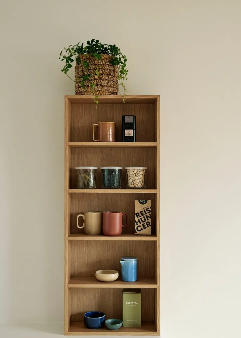 Das Kappu Regal Natur von eignet sich perfekt für die Präsentation von Kaffeetassen, schönen Gläsern und anderen Küchenaccessoires. Das Regal hat ein natürliches und minimalistisches Design, das es leicht macht, es in jedem Raum zu platzieren. Das Regal ist offen gestaltet und bietet mit seinen fünf Fächern viel Platz zum Ausstellen Ihrer Gegenstände. Das Regal kann auch im Badezimmer für Produkte oder im Wohnzimmer für Ihre Lieblingsbücher verwendet werden.