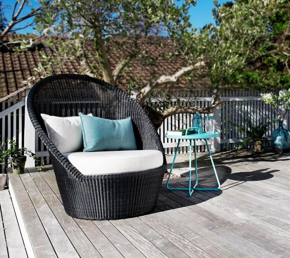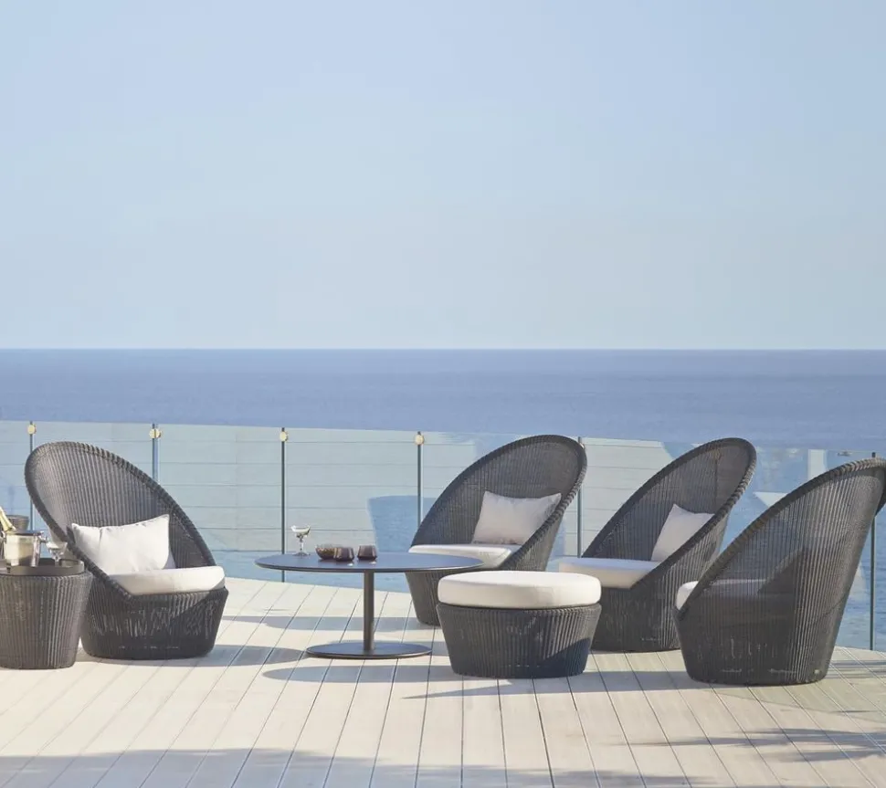 Kingston Liegestuhl ist ein ganz besonderes Erlebnis. Der Liegestuhl ist ein schönes und skulpturales Möbelstück zum Anschauen und äußerst bequem zum Sitzen. Das Augenmerk liegt auf der schönen geflochtenen Rückenlehne, die sowohl den Wind bricht, aber auch die warmen Sonnenstrahlen einfängt. Komfort wird großgeschrieben, und wenn der Liegestuhl mit dem passenden Fußhocker kombiniert wird, können Sie die Beine hochlegen und stundenlang pure Entspannung genießen. Diese Version ist mit Rädern ausgestattet, die es leicht machen, sie auf der Terrasse zu bewegen und kann sich um 360 Grad um sich selbst drehen, so dass Sie immer die Sonne genießen können.
