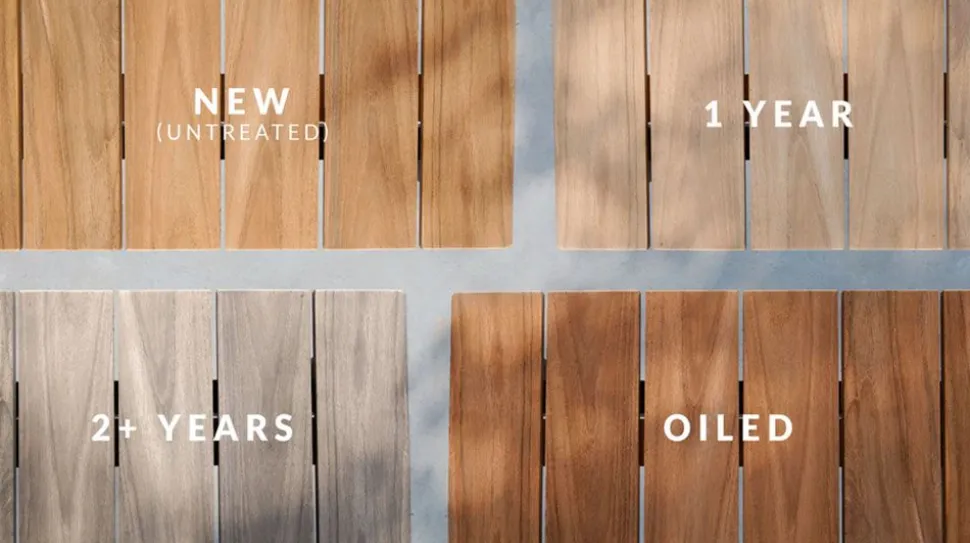 - Spezifikationen: Das Produkt wird aus echtem, unbehandeltem Teakholz hergestellt, was bedeutet, dass jeder Tisch seinen eigenen, einzigartigen Ausdruck mit natürlichen Variationen in Farbe und Maserung hat. Der Tisch wird unmontiert geliefert und besteht aus witterungsbeständigen Materialien, die das ganze Jahr über Regen, Schnee und Sonne standhalten. Der hohe natürliche Harzgehalt des Teakholzes schützt das Holz und macht es ganzjährig für den Außenbereich geeignet. Bei schlechtem Wetter empfiehlt es sich jedoch, den Tisch abzudecken oder ihn an einen geschützten Ort zu stellen. Wenn Sie die goldene Farbe des Holzes erhalten wollen, sollten Sie es regelmäßig mit Öl behandeln. Ohne Behandlung wird das Teakholz mit der Zeit eine schöne silbergraue Patina entwickeln.