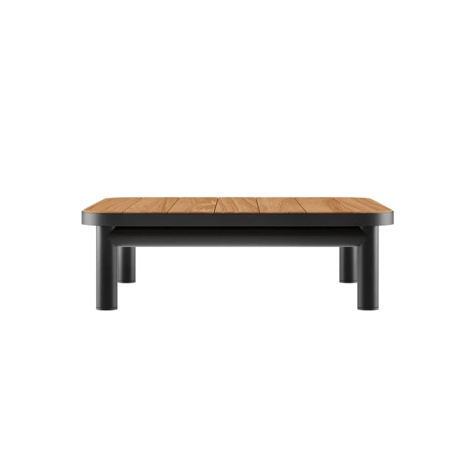 Kirra Side Table von , entworfen von Steffensen & Würtz, ist ein eleganter und funktionaler Beistelltisch für den Außenbereich. Der Tisch ist aus pulverbeschichtetem Aluminium gefertigt und hat eine schöne Tischplatte aus Teakholz, die Wärme und natürlichen Charme verleiht. Der Tisch ist Teil der Kirra Lounge-Serie und wurde als Ergänzung zu den Kirra Lounge-Sofas und -Sesseln entworfen, kann aber auch gut alleine stehen. Mit seinem stilvollen Design und den robusten Materialien ist er eine zeitlose Wahl für jede Terrasse oder jeden Garten.