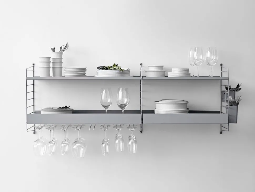 Funktionalität steht bei diesem Regalsystem an erster Stelle. Es schmückt Ihre Küchenwand, ordnet mühelos Ihre Utensilien und schafft einen Raum, der Ordnung und Klasse ausstrahlt. Die schlichte Eleganz dieses Stücks wird durch eine Auswahl an neuen Farben und Varianten ergänzt, die es Ihnen ermöglichen, es an Ihren persönlichen Stil anzupassen.