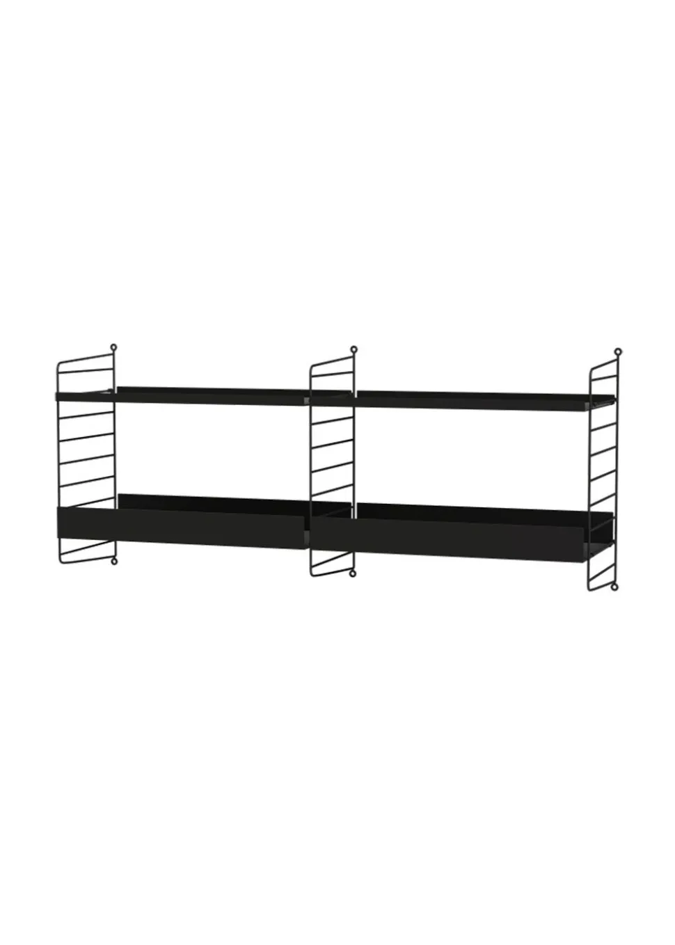 Bestandteile: 1 x 2er-Pack Wandpaneel H50 x T30 cm | 1 x Wandpaneel H50 x T30 cm | 2 x Metallregal Hoch B58 x T30 cm | 2 x Metallregal Niedrig B58 x T30 cm.