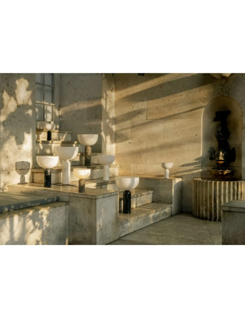 DieKizu Portable Lamp von ist eine stilvolle und praktische Beleuchtungslösung für jeden Raum. Mit ihrem schlanken und eleganten Design, das einen langen, schönen Marmorsockel und eine zarte Glaskuppel in einem Halbkreis aufweist, passt die Kizu Portable Table Lamp perfekt in moderne und minimalistische Interieurs. Die organische Form und die weichen Linien der Leuchte schaffen ein einzigartiges Gleichgewicht zwischen Funktion und Ästhetik, und die handgefertigte Glaskuppel sorgt für warmes und angenehmes Licht.