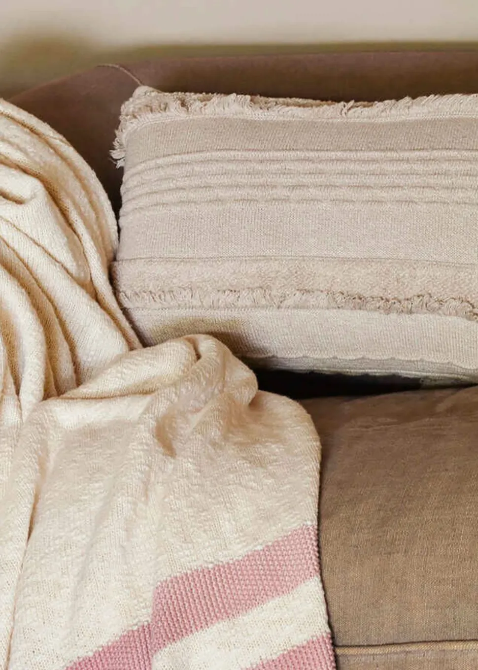 Das gestrickte Kissen Air von ist ein wunderschönes Kissen. Dieses weiche und luxuriöse Kissen ist ein Must-Have für jede Wohnungseinrichtung. Als Teil der Early Hours-Serie, die aus 100% Baumwolle besteht und von handgefertigt wird, ist dieses Kissen sowohl bequem als auch stilvoll. Das fein gestrickte Design und die beruhigenden Farben passen perfekt zu jeder Einrichtung und sind eine tolle Möglichkeit, Ihr Sofa oder Bett aufzuwerten. Verwenden Sie dieses Kissen, um eine gemütliche und entspannte Atmosphäre in Ihrem Zuhause zu schaffen. Wenn Sie eine Pause von der Hektik des Alltags brauchen, lassen Sie sich in Ihr Lieblingskissen fallen und genießen Sie den Komfort und die Ruhe.