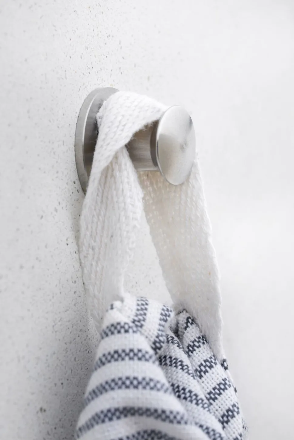 Der mit unprätentiöser Brillanz gefertigte Haken definiert die Schlichtheit selbst neu. Er besteht aus zwei sorgfältig geformten Metallteilen und einer einzigen Schraube und ist eine Hymne auf die Eleganz des Weniger-ist-Mehr. Ob Knob als kunstvoller Haken Ihre Wände ziert, Ihre Türen mit seiner luxuriösen Präsenz schmückt oder Ihre Küchenschränke mit einem Hauch von Raffinesse verschönert, er ist ein vielseitiges Meisterwerk, das auf Schritt und Tritt Nutzen stiftet.