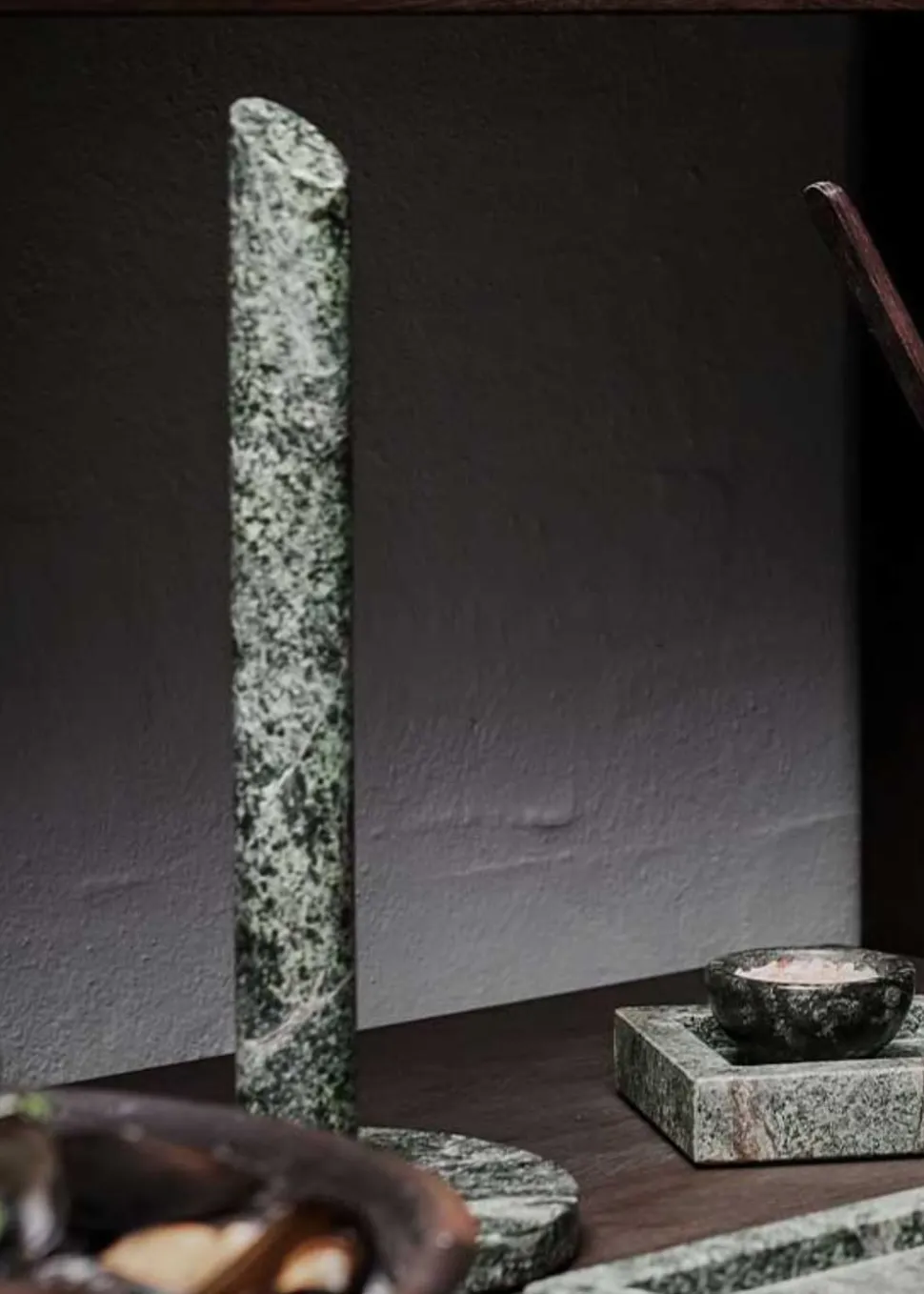 Der Vita-Küchenrollenhalter von Muubs ist nicht nur eine praktische Ergänzung für die Küche, sondern ein echtes Stück Handwerkskunst, das durch seine unantastbare Schönheit und seinen einzigartigen Charakter besticht. Handgeschnitzt aus feinstem grünem Marmor, präsentiert jeder Vita-Halter ein einzigartiges Muster und Farbspiel, das einen Hauch der rauen Eleganz der Natur in Ihr Zuhause bringt. Das moderne Design mit der abgeschrägten Oberseite ist ein subtiles Detail, das den robusten und zeitlosen Charme des Marmors ergänzt.