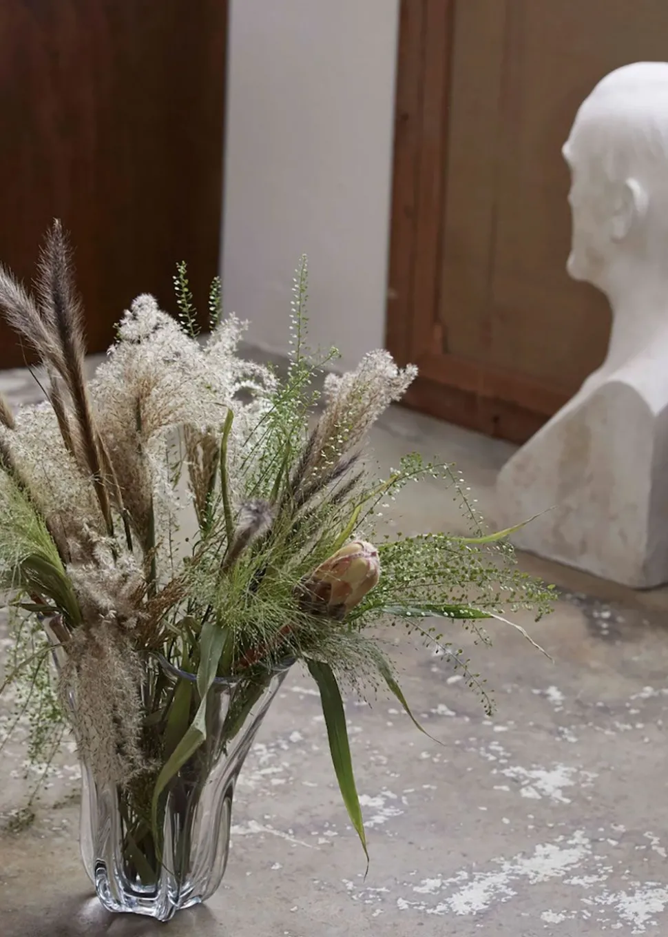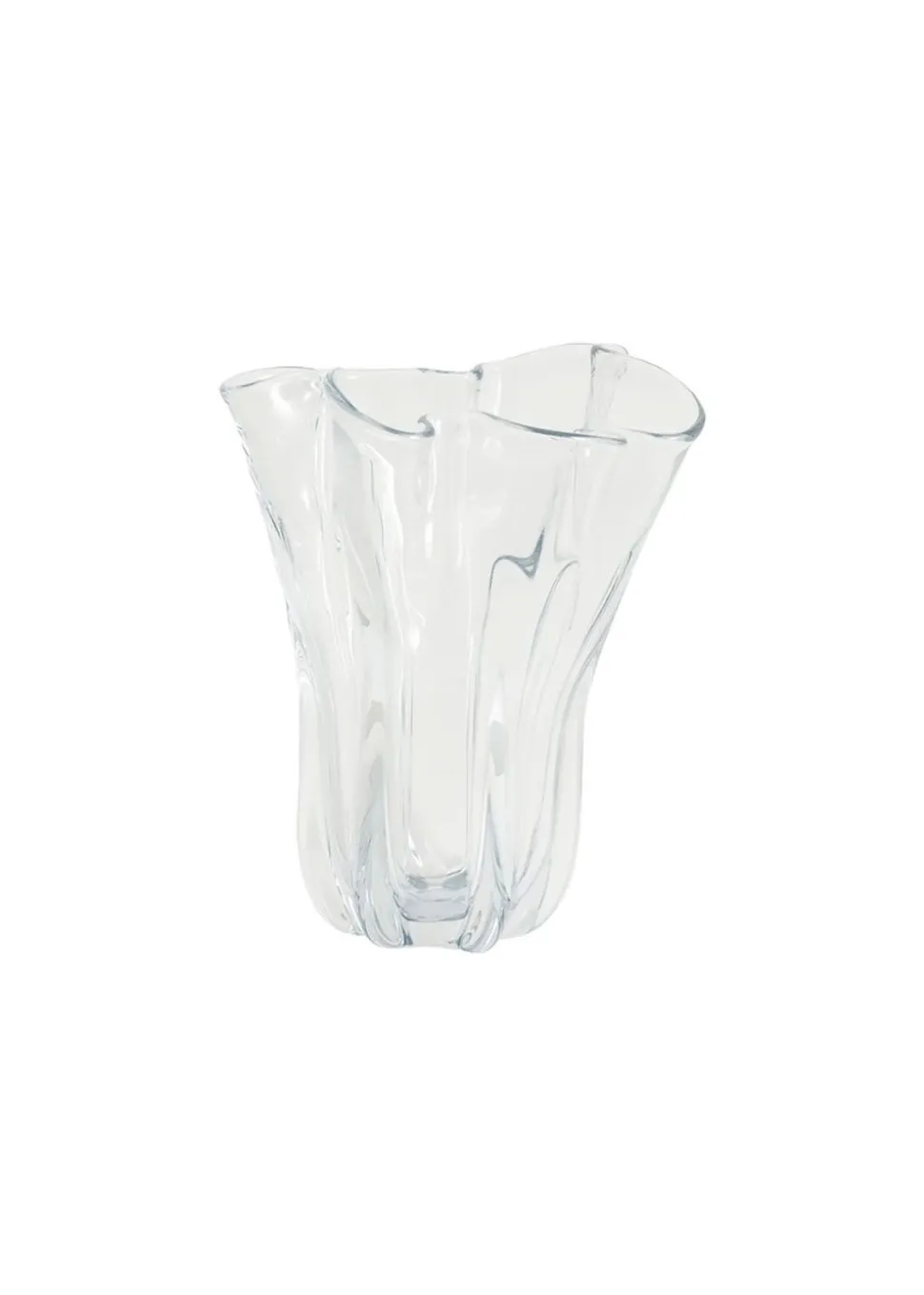 Die Vase ist aus hochwertigem Glas gefertigt und hat eine einzigartige Form, die jedem Raum Eleganz und Stil verleiht. Die Vase ist vielseitig verwendbar und kann sowohl für Ihre Lieblingsblumen als auch als dekoratives Element verwendet werden, das die Blicke auf sich zieht.