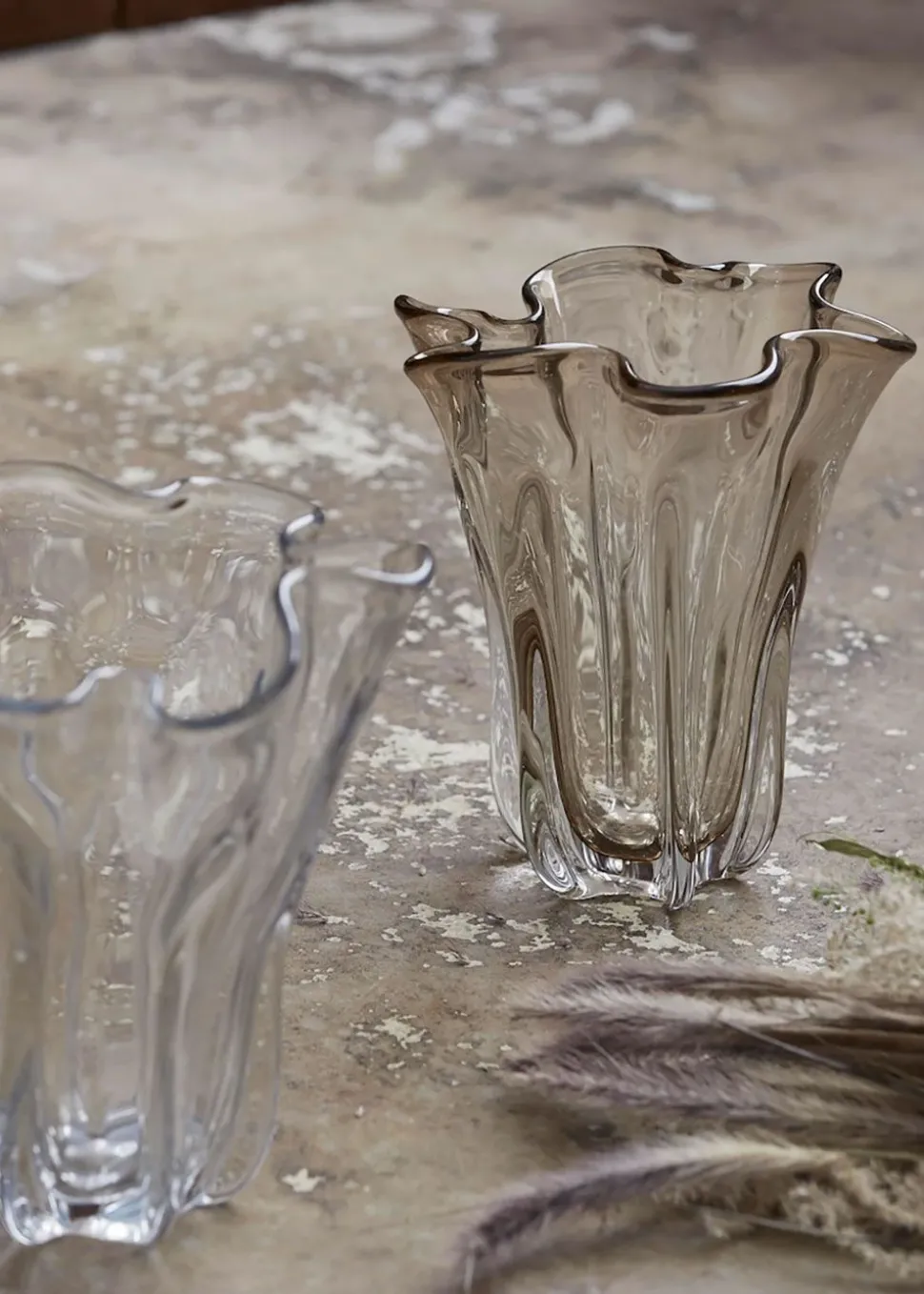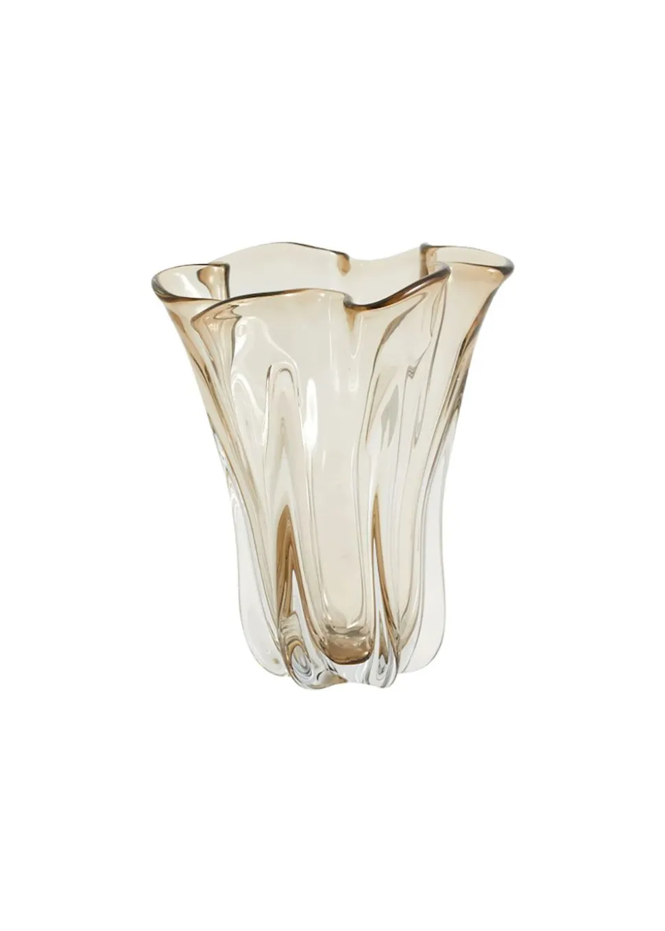 Die Vase ist aus hochwertigem Glas gefertigt und hat eine einzigartige Form, die jedem Raum Eleganz und Stil verleiht. Die Vase ist vielseitig verwendbar und kann sowohl für Ihre Lieblingsblumen als auch als dekoratives Element verwendet werden, das die Blicke auf sich zieht.