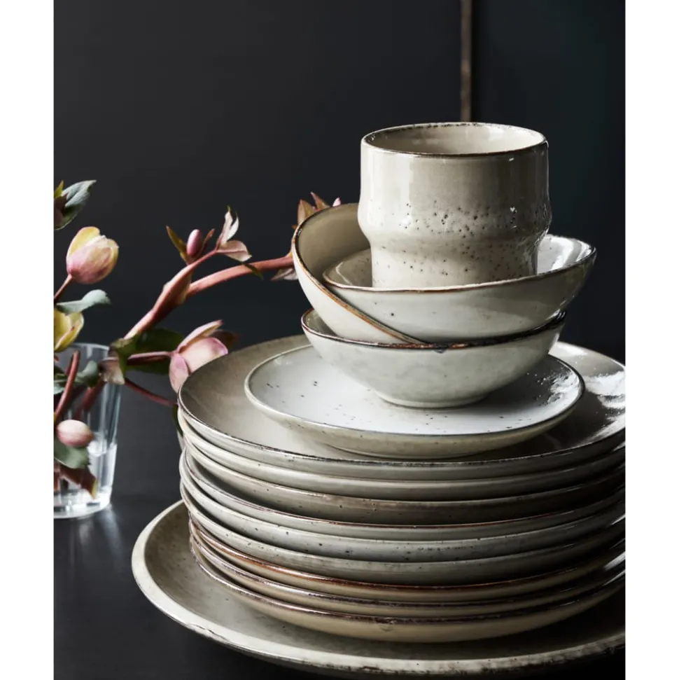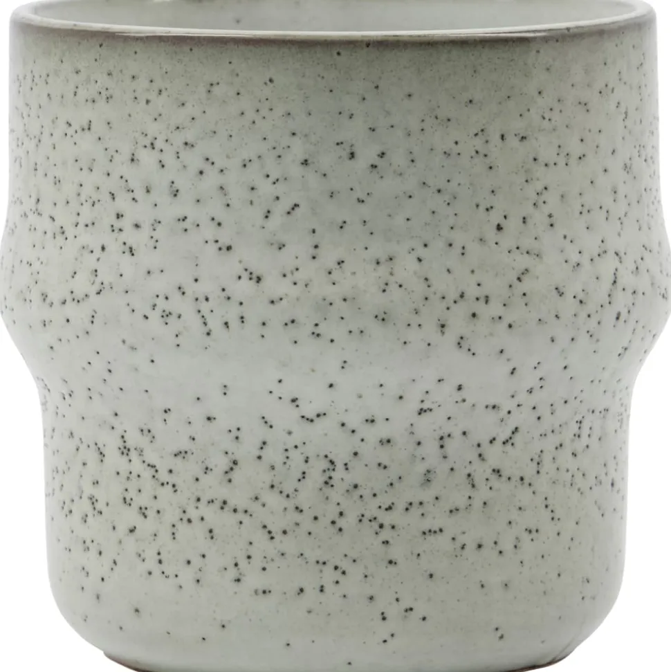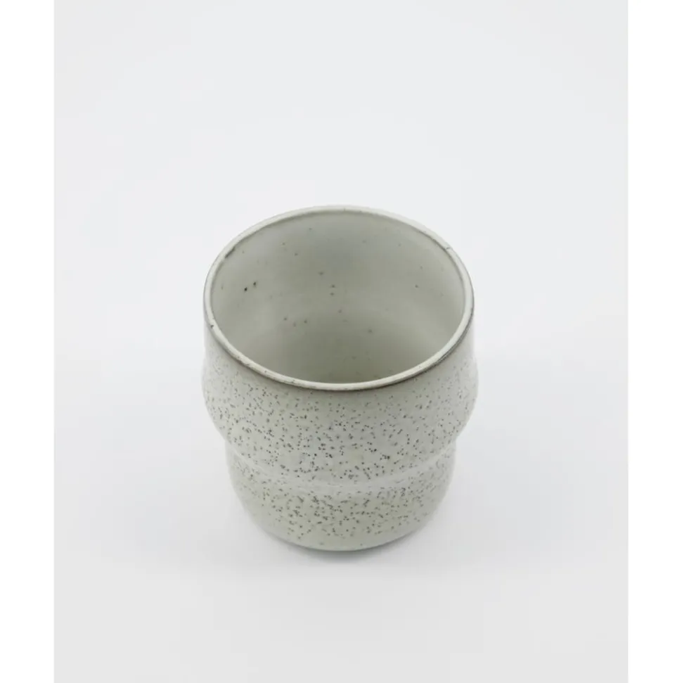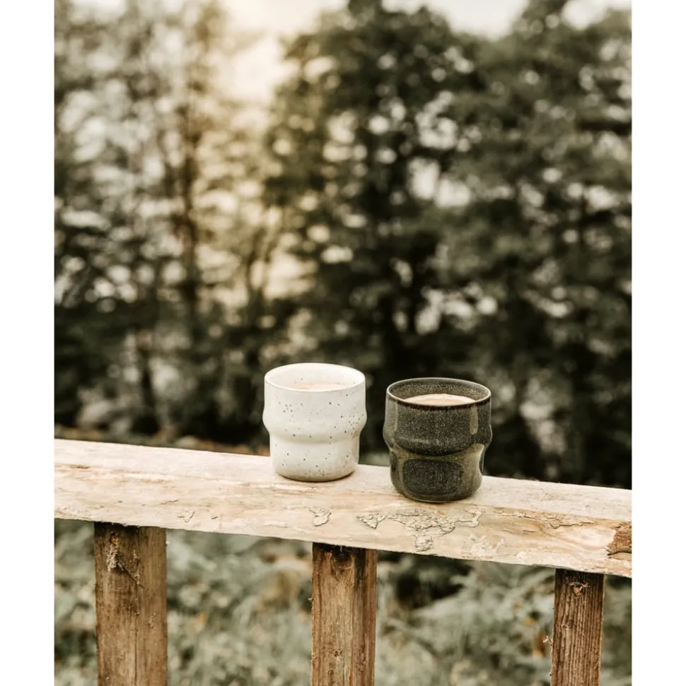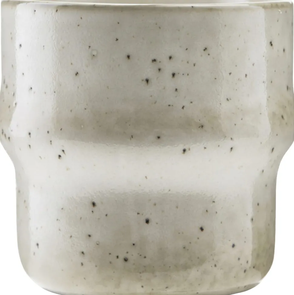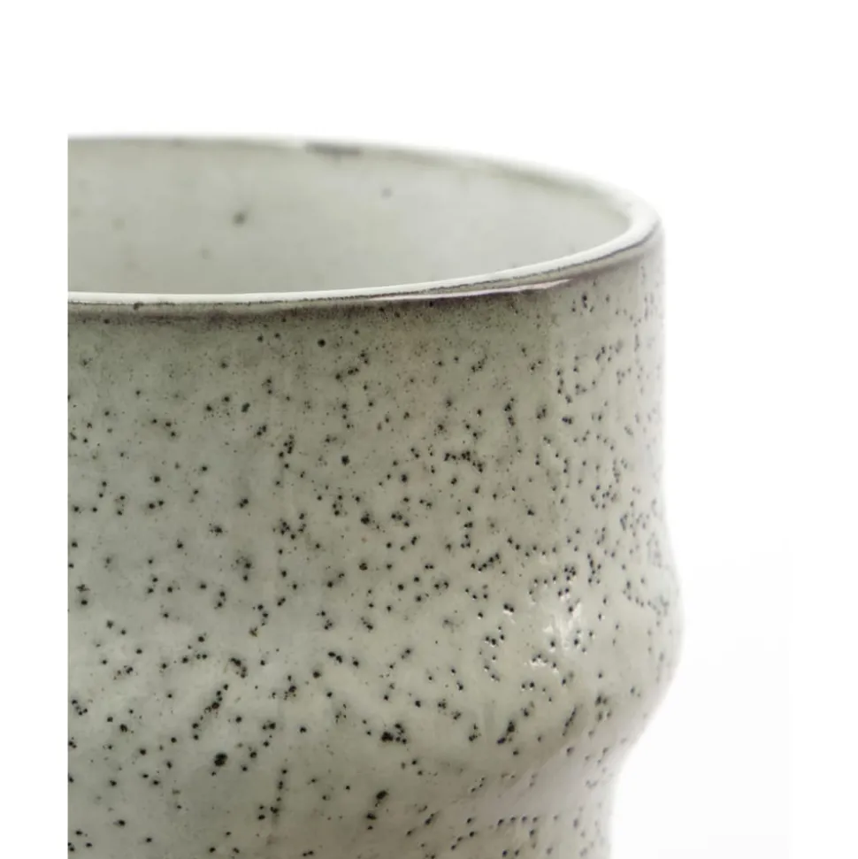 House Doctor präsentiert die HDLake Mug, eine elegante Tasse aus Steingut ohne Henkel, die ein rustikales Design mit einer gepunkteten Glasur in Grautönen kombiniert. Mit einem Fassungsvermögen von 31 cl ist sie ideal für Ihre liebsten Heißgetränke.