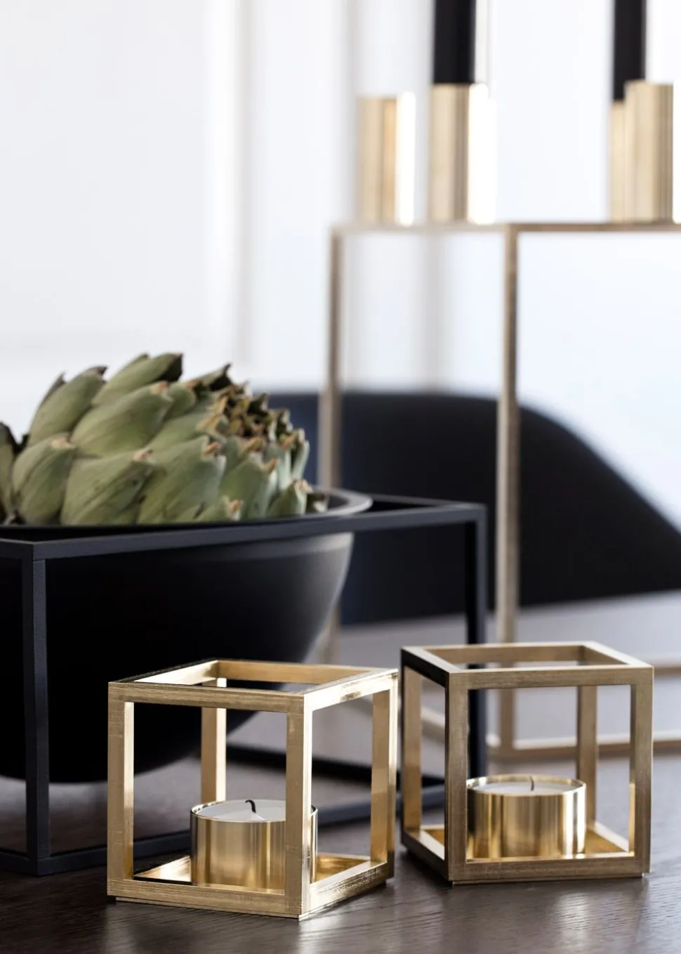 Der Kubus T Kerzenleuchter ist zu einer modernen Ikone geworden. Das Design des Kerzenhalters ist seit 1962 eine Ikone der dänischen Designkultur, wo Mogens Lassen diesen zeitgenössischen Kerzenhalter entwarf.