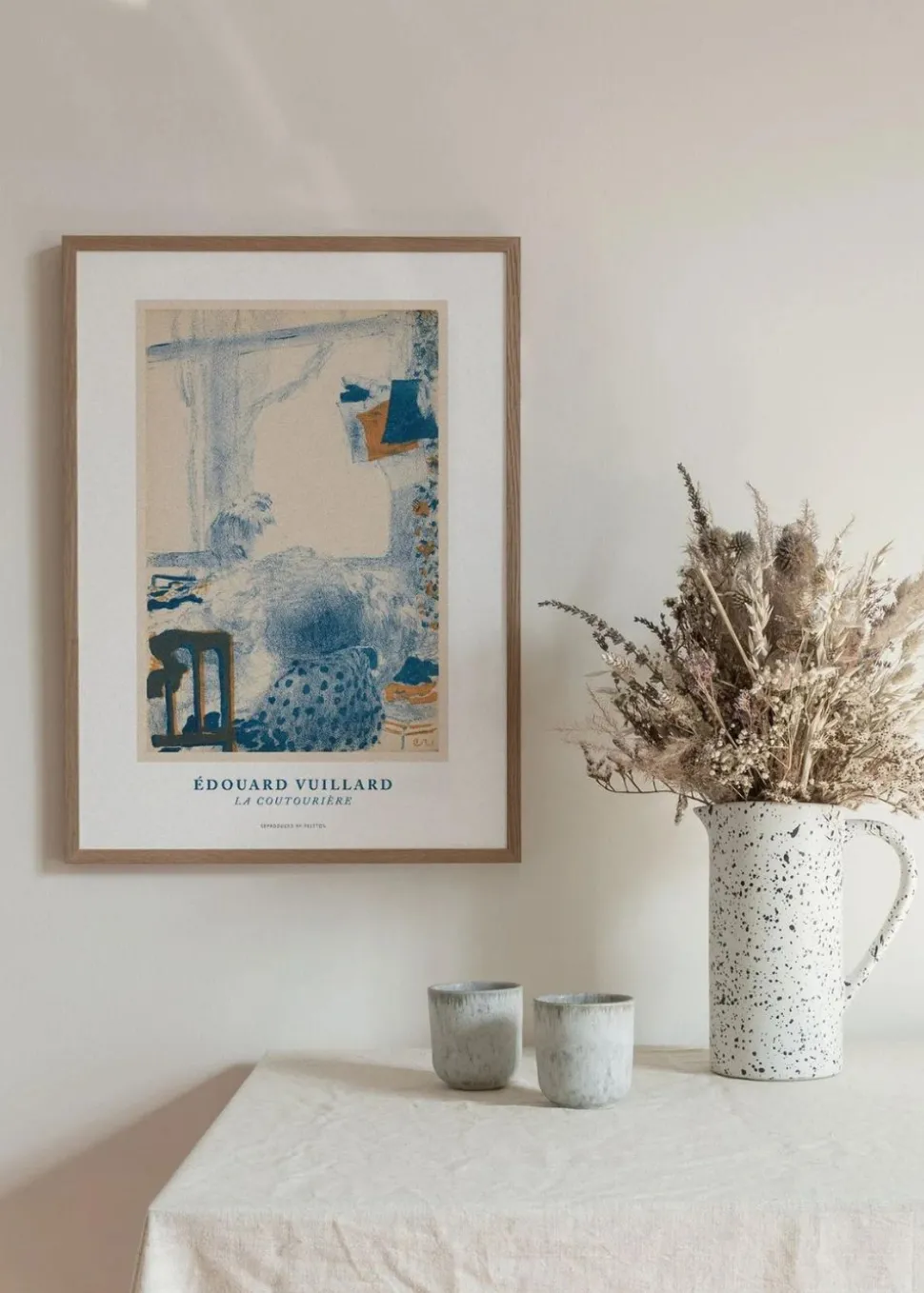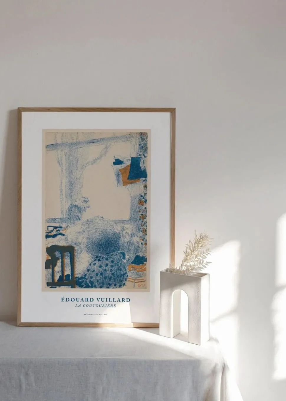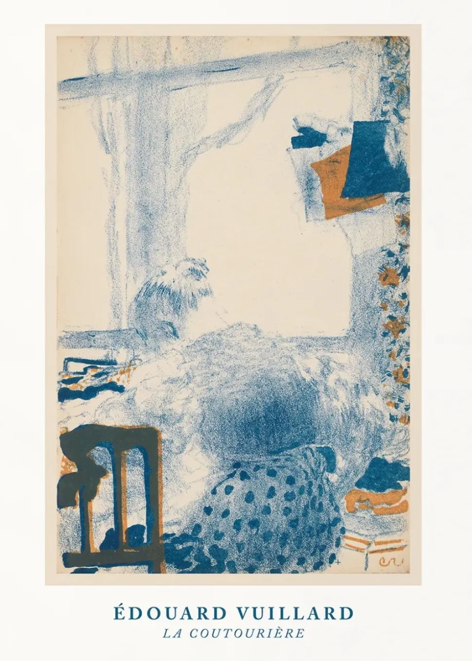 La coutourière wurde von dem Künstler Edouard Vuillard entworfen. Das Plakat ist minimalistisch und stilvoll. Sein Motiv soll eine Frau darstellen, die an einer Nähmaschine arbeitet. Die Figur der Frau ist in einem skizzenhaften Stil gezeichnet, was einen einzigartigen Look erzeugt. Sein klassisches Design ist als dekorativer Wandschmuck für Ihr Zuhause unverzichtbar.