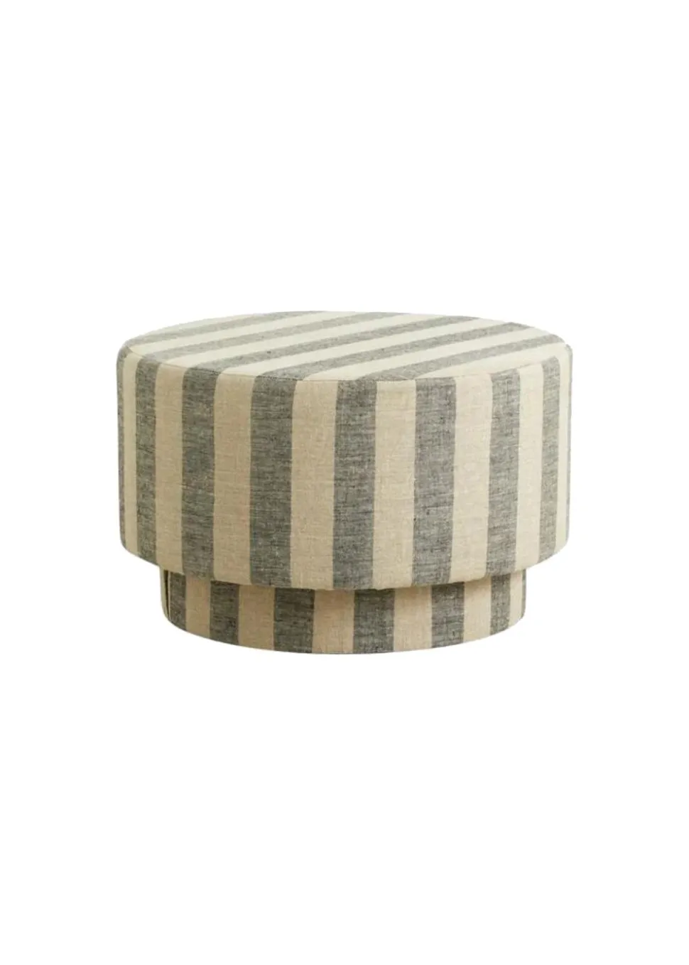 DerHocker LADOGA von ist mit seinem schönen Design die perfekte Ergänzung für Ihr Zuhause. Die klassischen Streifen in ihren gedeckten Farben bringen Schwung und Eleganz in Ihre Einrichtung. Der Hocker ist mit einem natürlichen Leinenstoff gepolstert, der einen rohen Look hat. Der LADOGA Pouf kann als Stuhl oder als Tisch verwendet werden, je nach Bedarf.