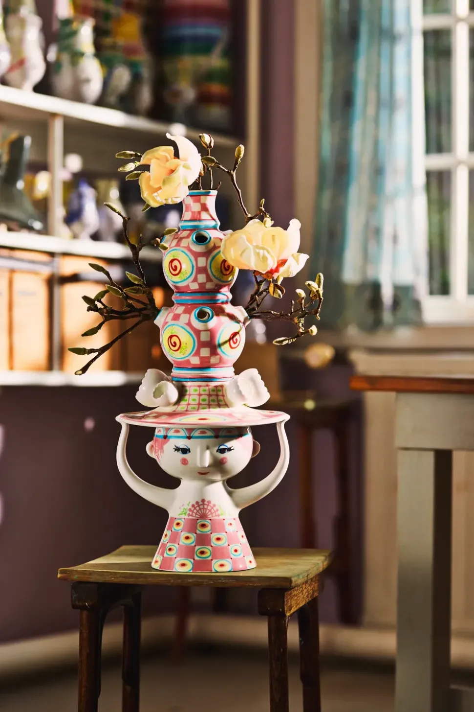 Lady with Hat Vase fra er et kunstnerisk mesterværk, der forener skulpturel elegance med funktionel design. Den høje, slanke silhuet i porcelæn prydes af Wiinblads karakteristiske kvindeportræt og en raffineret, håndmalet dekoration. Den brede, bølgende hat tilfører et eventyrligt udtryk, mens de bløde linjer og fine detaljer skaber en harmonisk balance mellem klassisk håndværk og fantasifuld æstetik.