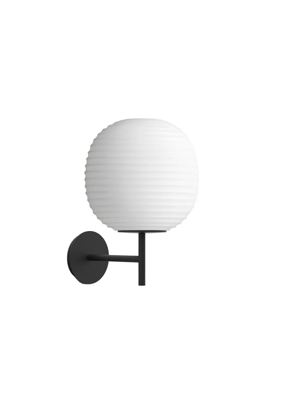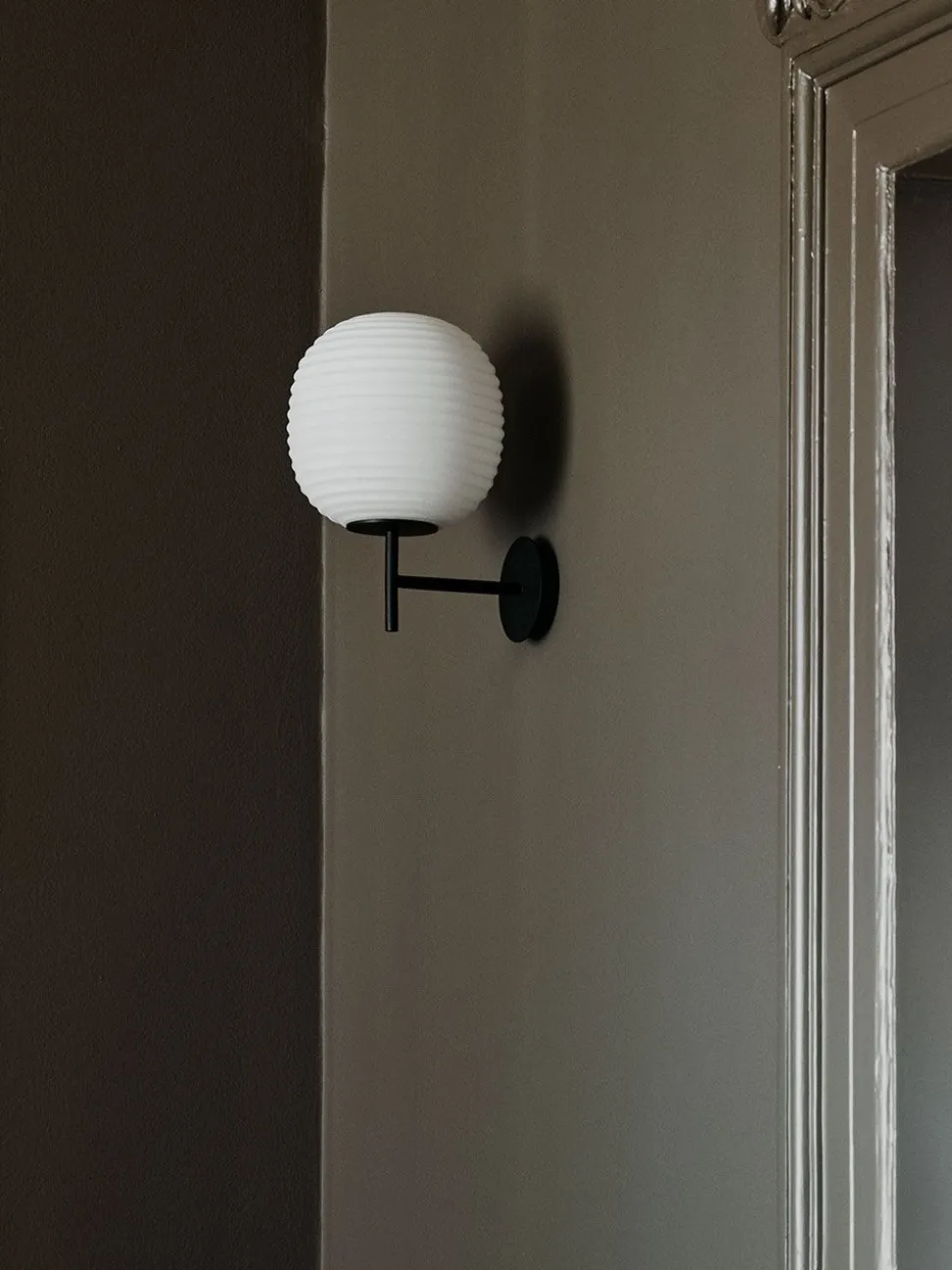 Die Lantern Wall Lamp und ihr Pendant, die Lantern Globe Lamp, haben einen eleganten schwarzen Stahlsockel, der das weiche, diffuse Licht aus der strukturierten Glaskugel brillant strahlen lässt. Mit dieser Ergänzung können Sie die Essenz der Lantern-Serie in jede Ecke Ihres Hauses bringen, vom Schlafzimmer zum Flur, von der Küche zum Wohnzimmer.