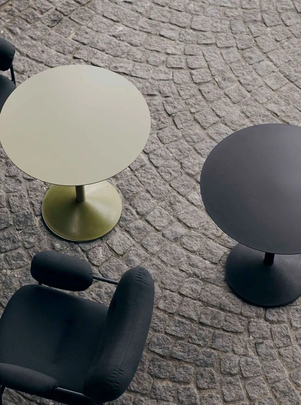 Der von Andreas Engesvik entworfene Tisch „Lara“ ist in seiner Schlichtheit einzigartig und trägt dazu bei, dass der Tisch in seinen Gestaltungsmöglichkeiten universell ist. Der Tisch ist aus elegantem Stahl gefertigt und hat einen kegelförmigen Fuß aus gebürstetem Zement, der dem ansonsten leichten Tisch zusätzliches Gewicht verleiht. Dank dieser langlebigen Materialien ist der Tisch für den Außenbereich geeignet, lässt sich aber auch problemlos in die Inneneinrichtung integrieren, sei es in der Küche oder im Büro.