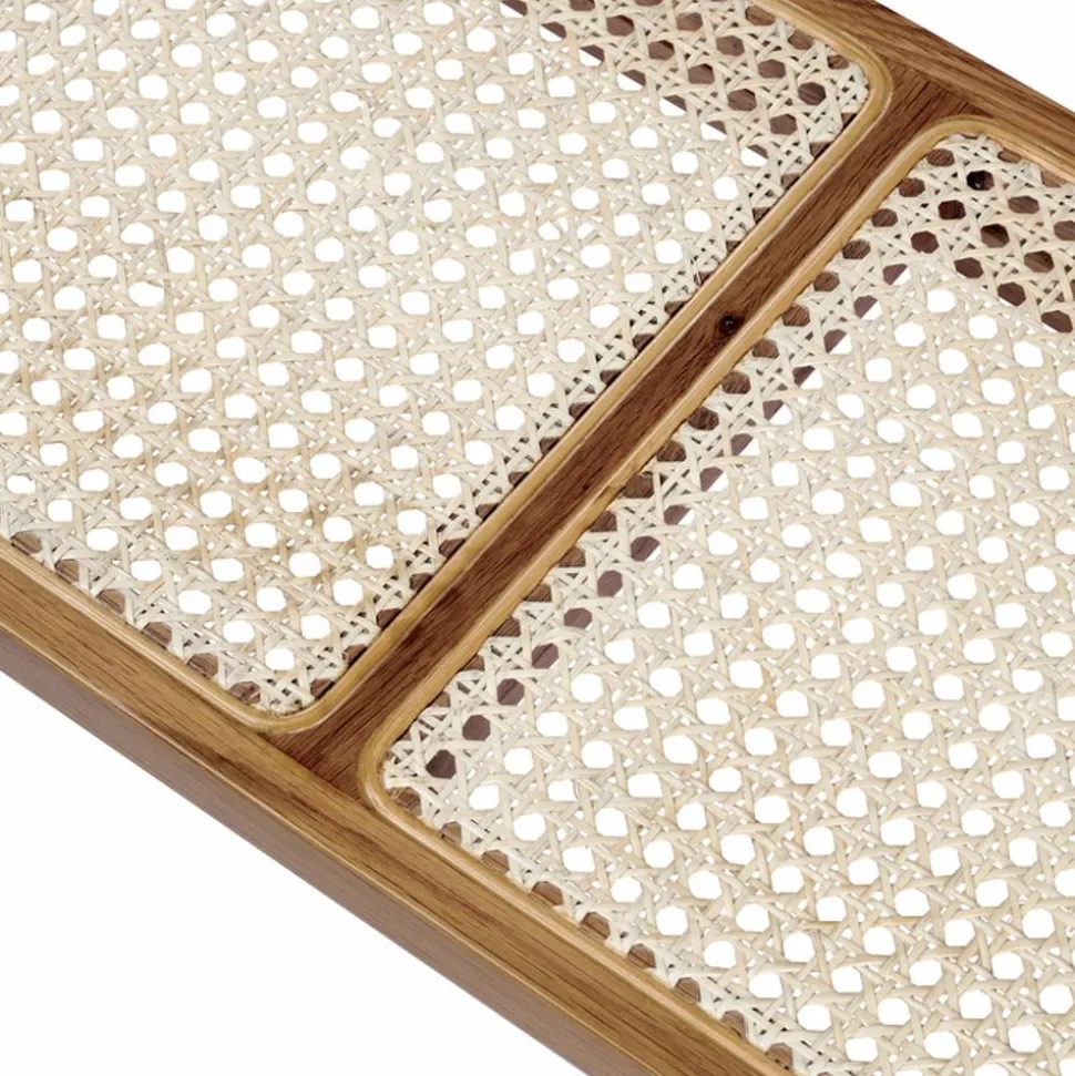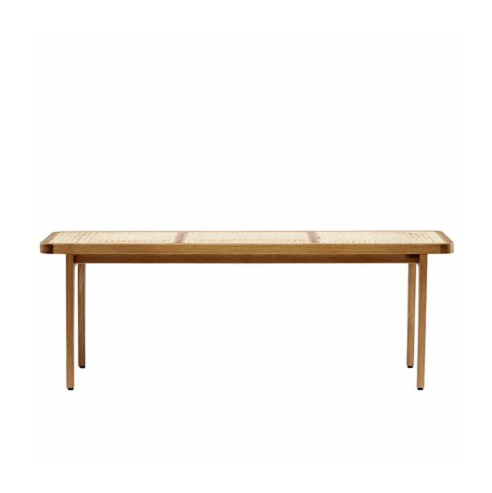 Mit ihrem bekannten französischen Rattangeflecht und dem geometrischen Sitz ist die Bank Le Roi ein elegantes und charakteristisches Möbelstück. Inspiriert von Möbeln aus der Kolonialzeit, ist die Bank eine moderne Version eines ansonsten historischen Möbelstücks.
