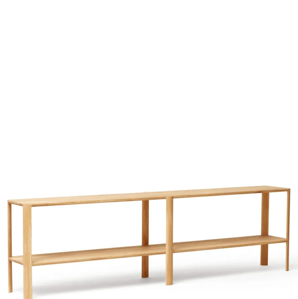 Das Leaf-Regal ist ein Versuch, ein Regalsystem zu schaffen, das eine ultimative Balance zwischen Ästhetik, Stabilität und Packbarkeit schafft. Es zeichnet sich durch eine sehr reine Ästhetik aus, da das Ziel ist, dass die Beinpfosten im Mittelpunkt stehen. Mit einem organischen und reinen Ausdruck – geformt wie ein Blatt – geben sie dem System seinen charakteristischen Look. Auch die Konstruktion selbst besticht durch ihre Stabilität. Sie ist glatt, ohne sichtbare Schrauben oder extra stabilisierende Teile auf der Rückseite des Regals. Das Leaf-Regal ist Teil der Form & Refine OffCuts-Linie, in der Reststoffe und ausrangierte Materialien aus verschiedenen Branchen zu neuen Upcycling-Produkten mit attraktiver Form, hoher Qualität und ökologischem Wert verarbeitet wurden.