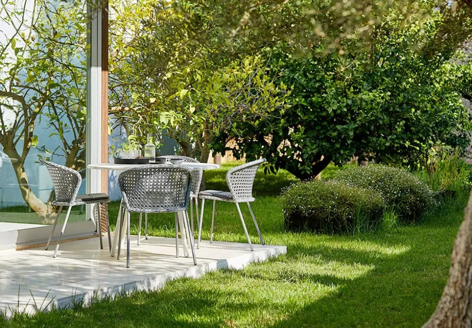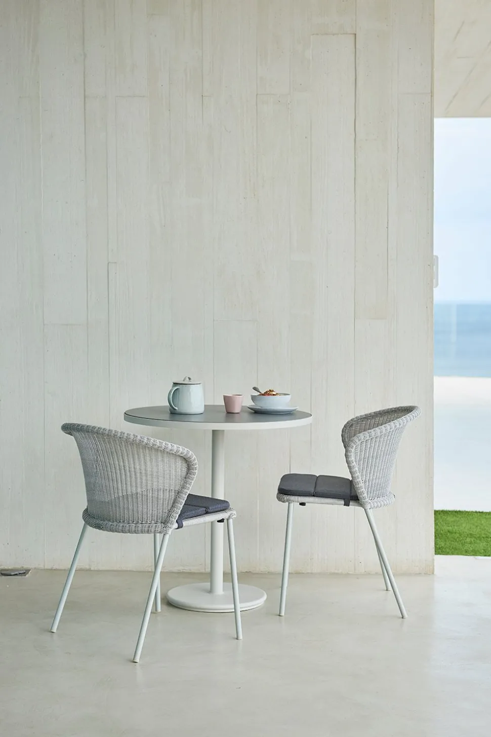 Die schlanken Stühle werden vom Design-Duo Welling/Ludvik entworfen, die für ihre rein ästhetischen Entwürfe bekannt sind, und dass jedes Detail der Möbel einen Zweck und eine Funktionalität hat. Die Stühle sind aus Cane-Line-Geflecht oder Cane-Line-French-Geflecht mit einem Aluminiumrahmen gefertigt. Für die Stühle kann ein Kissen gekauft werden.