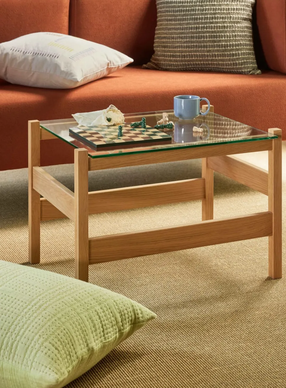 Der Ledge Beistelltisch von verbindet natürliche Eleganz mit moderner Raffinesse. Der massive Sockel aus FSC-zertifizierter Eiche ist mit präzisen geometrischen Linien versehen, die eine skulpturale Anmutung erzeugen. Die transparente Glasplatte verleiht dem Tisch ein leichtes und luftiges Gefühl, während sie die Konstruktion des Tisches und die natürliche Schönheit der Materialien wunderschön hervorhebt.