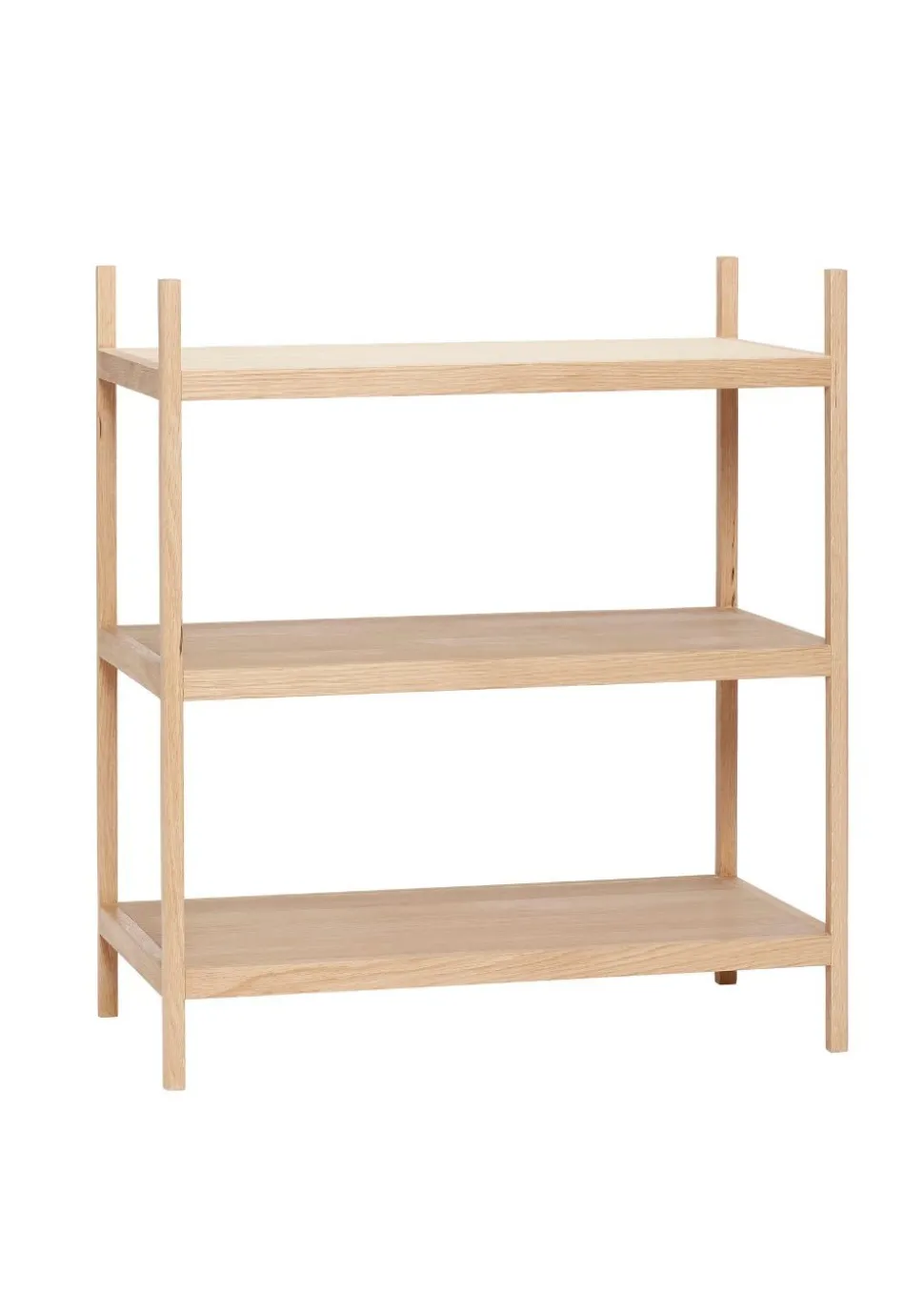 Library Shelf Small Natur von ist ein minimalistisches Eichenregal. Das Eichenregal bringt Charme und Wärme in die Wohnung. Es hat drei tiefe Regalböden und bietet viel Platz zum Aufbewahren und Präsentieren Ihrer Lieblingsstücke. Verwenden Sie es im Wohnzimmer für Zeitschriften, Pflanzen und Lampen, im Kinderzimmer für Spielzeug und Bücher oder in der Küche für Küchenpflanzen und -utensilien.