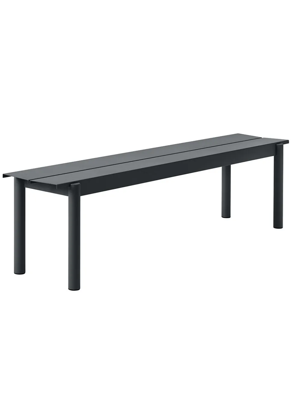 Linear Steel Bench wird von hergestellt. Die Bank ist schlicht, elegant und aus lackiertem Stahl für den Außeneinsatz gefertigt.