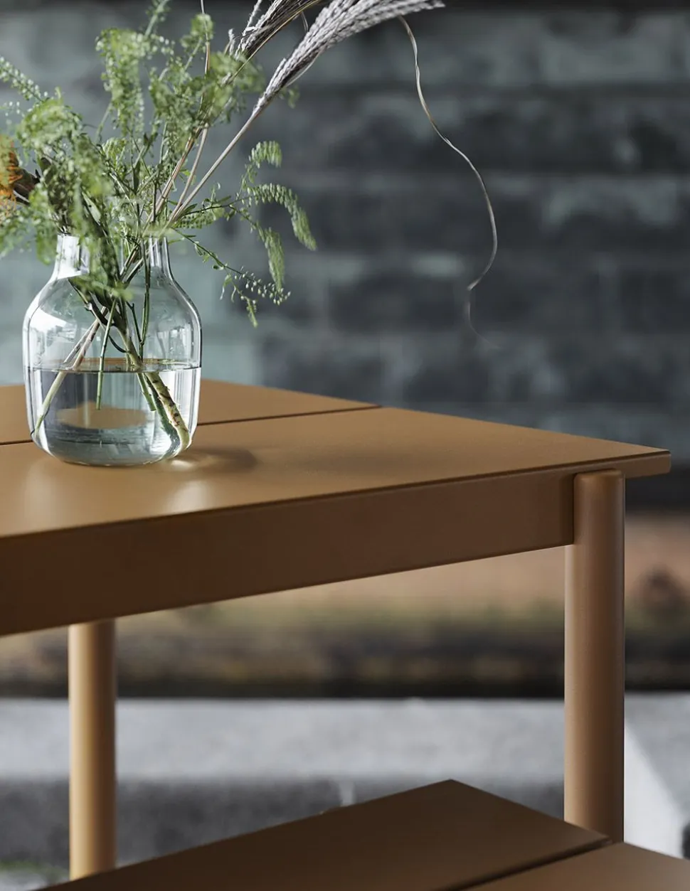 Lineartisch aus Stahl wird von hergestellt. Der Tisch ist schlicht, elegant und aus lackiertem Stahl für den Außeneinsatz gefertigt.