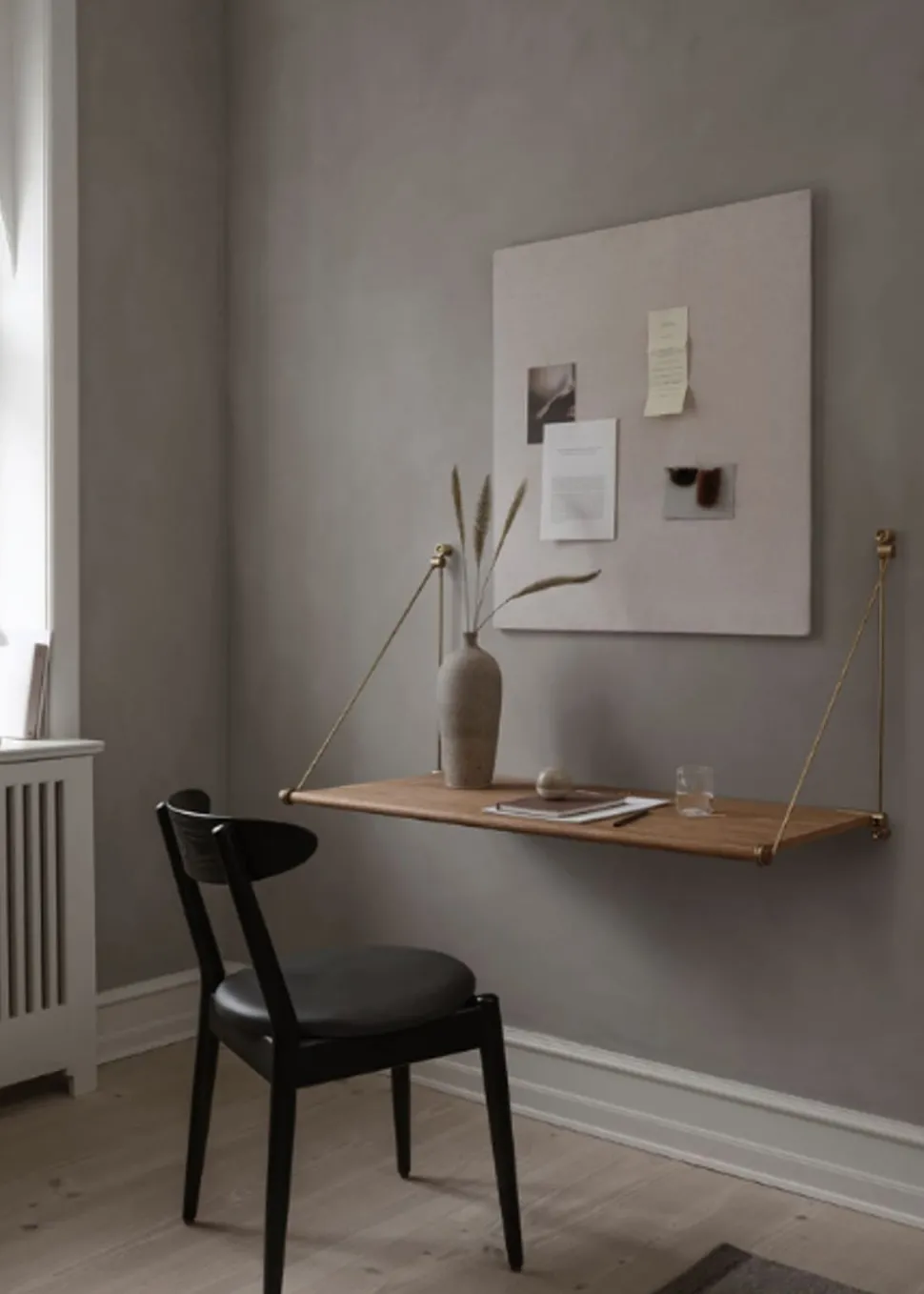 Schöne und besondere Schreibtisch ist es perfekt, um als Schreibtisch zu verwenden. Der Schreibtisch kann nach oben oder unten geklappt werden, je nach Bedarf und Platzangebot. Der Schreibtisch ist aus wunderschönem FSC-zertifiziertem Eichenholz mit einigen schönen Messingdetails gefertigt, die zusammen einen wirklich einzigartigen Schreibtisch ergeben. Was diesen Schreibtisch so besonders macht, ist die Art, wie er genutzt werden kann. Durch die Aufhängung an der Wand wirkt der Raum heller und bietet mehr Platz. Suchen Sie sich einen schicken Stuhl und stellen Sie Ihr neues Lieblingsbüro zusammen. Die FSC-zertifizierte Eiche, aus der dieser schöne Schreibtisch gefertigt ist, ist ein skandinavisches, umweltfreundliches Material.
