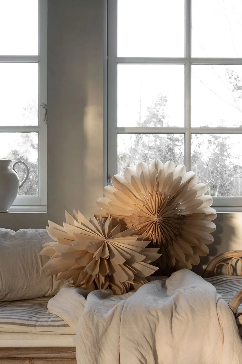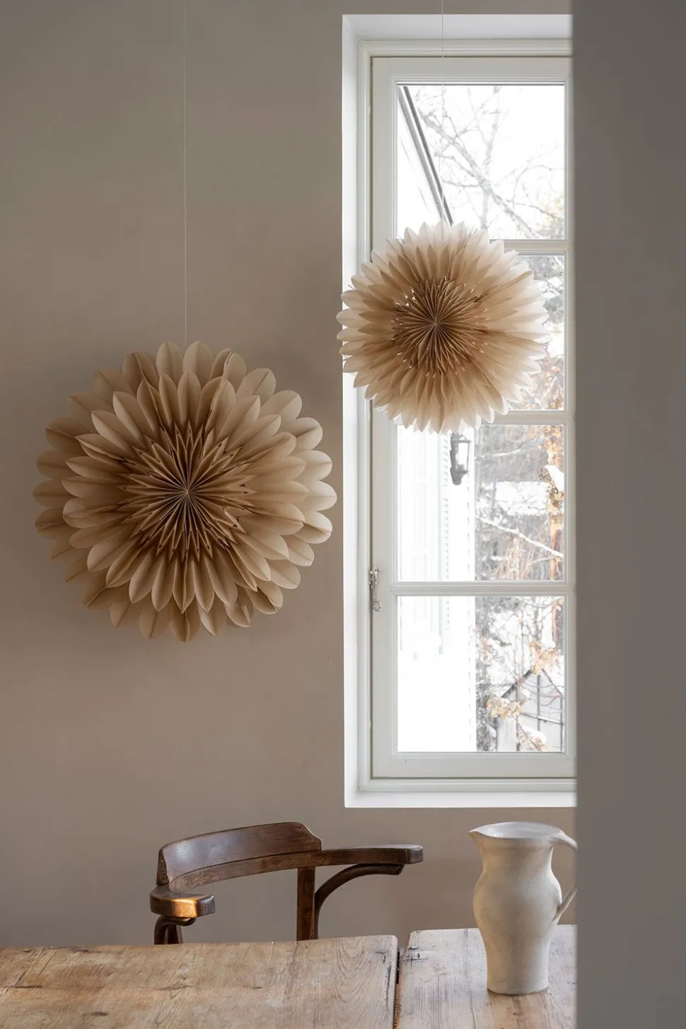 Der feine und schlichte Lotus-Stern wurde von Watt & Veke im Jahr 2022 entworfen. Der Weihnachtsstern ist ein Genuss für die Sinne, da er von der schönen und duftenden Blume, dem Lotus, inspiriert ist. Der Lotus-Stern hat auch ein schönes Aussehen mit dem transparenten Papier, durch das das Licht hindurchscheint. Der Stern ist aus handgeschöpftem Papier und wird in einer schönen Geschenkbox geliefert.