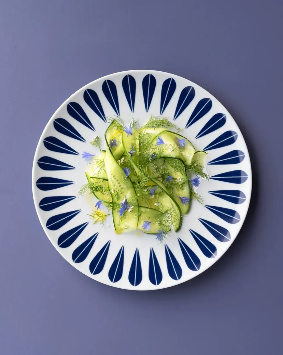 Schöner Speiseteller mit dem ikonischen „Lotus“-Muster, das 1965 vom norwegischen Künstler Arne Clausen entworfen wurde. Das Lotus-Muster ist inspiriert von der schönen Lotusblume und ihren eleganten Blättern. Es ist ein stilvoller Teller, der sowohl für den Alltag als auch für festliche Anlässe geeignet ist.