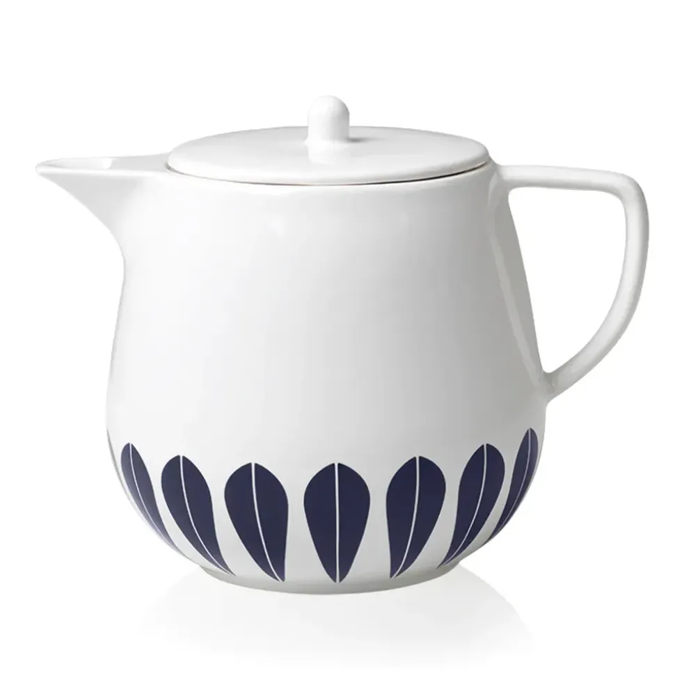 Schöne Teekanne mit dem ikonischen „Lotus“-Muster, das 1965 vom norwegischen Künstler Arne Clausen entworfen wurde. Das Lotus-Muster ist inspiriert von der schönen Lotusblume und ihren eleganten Blättern. Es ist eine stilvolle Teekanne, die sowohl auf dem Frühstückstisch als auch auf der Geburtstagstorte eine gute Figur macht.