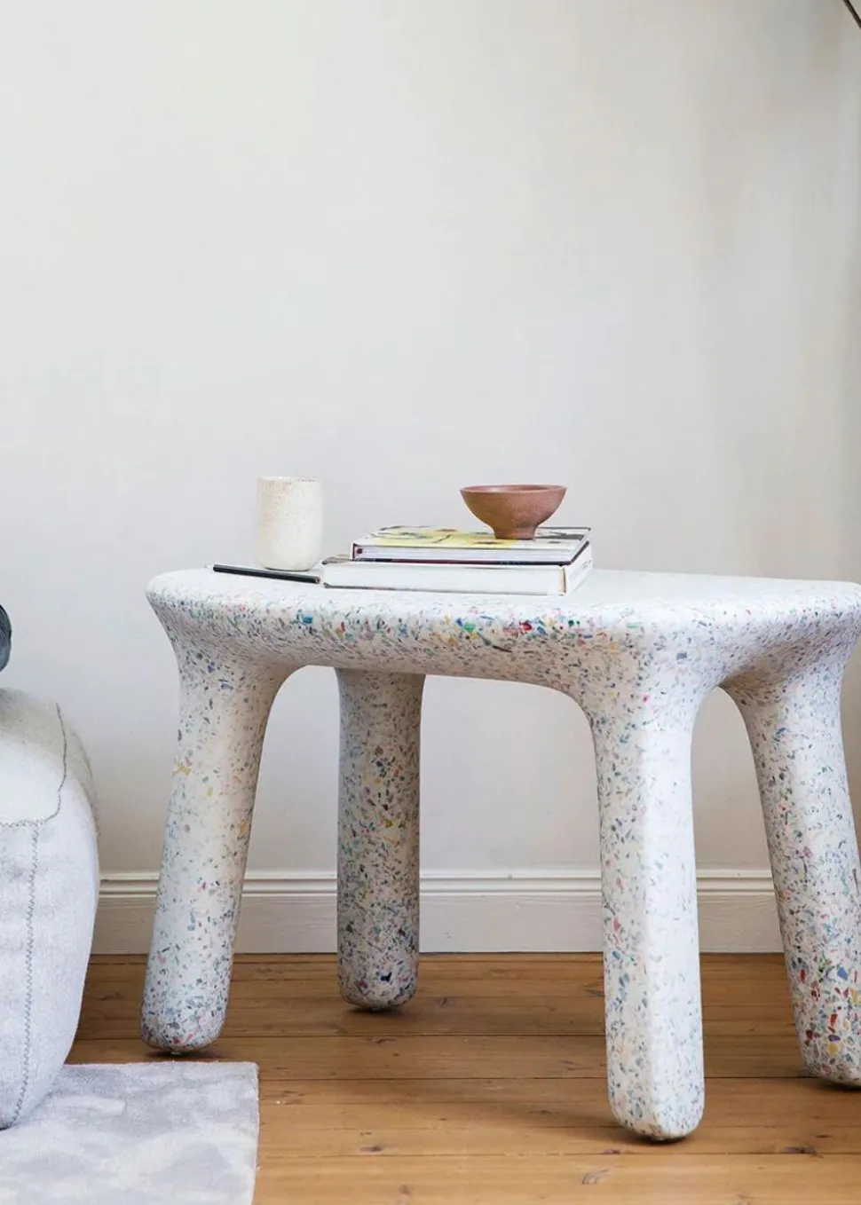 Die Kindertische werden aus recyceltem Kunststoff hergestellt, was ihnen ihr unverwechselbares Aussehen verleiht. Durch das spezielle Herstellungsverfahren ist jedes Produkt ein Unikat. Durch die glatte Oberfläche des Materials ist er leicht zu reinigen und zu pflegen. Der Tisch kann sowohl im Innen- als auch im Außenbereich verwendet werden.
