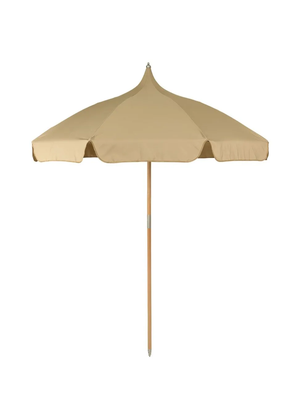 Der Sonnenschirm Lull von schützt vor der unerbittlichen Hitze des Sommers und lädt zum Ausruhen und Entspannen im Schatten ein. Der Sonnenschirm hat eine Pagodenform, die ihm einen romantischen Look verleiht. Mit dem FSC™-zertifizierten Holzstamm ist der große Sonnenschirm für den Außenbereich ideal für Picknicks im Garten, am Strand und überall dort, wo Sie Schutz vor der Sonne brauchen. Der Sonnenschirm bietet UV 30+ Schutz. Er wird in einer praktischen, passenden Tasche geliefert, die den Transport erleichtert. Hin und her.