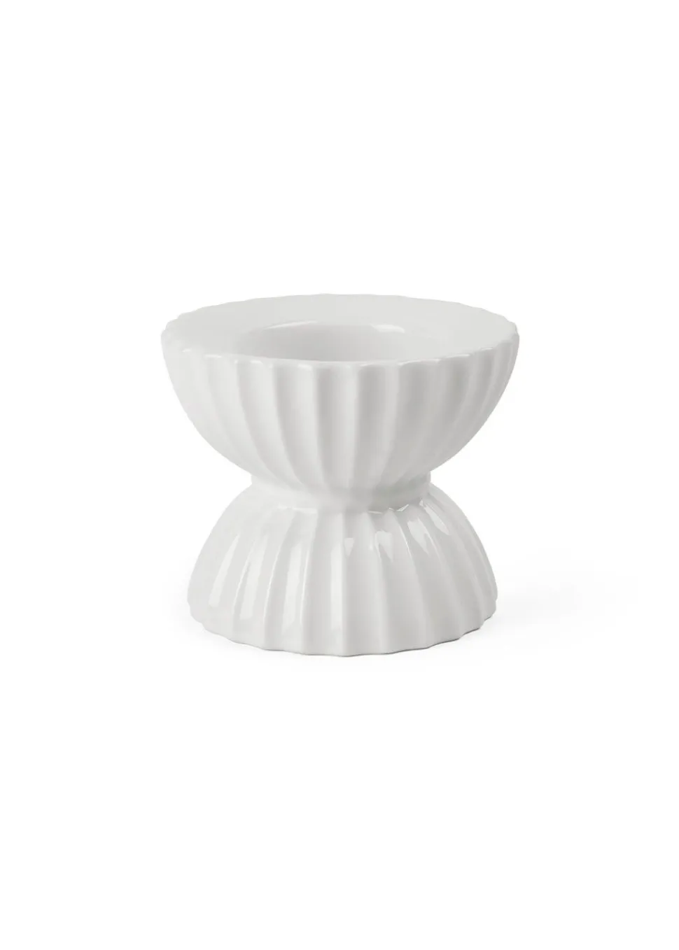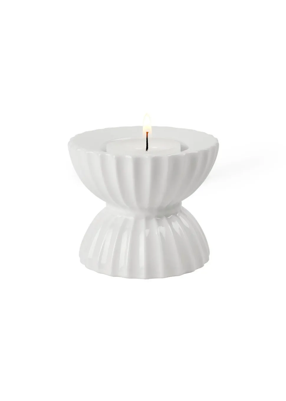 Der Lyngby Tura Teelichthalter von Lyngby Porcelæn ist ein schlichter, stilvoller und skulpturaler Teelichthalter, der die Aufmerksamkeit im Raum auf sich ziehen soll.