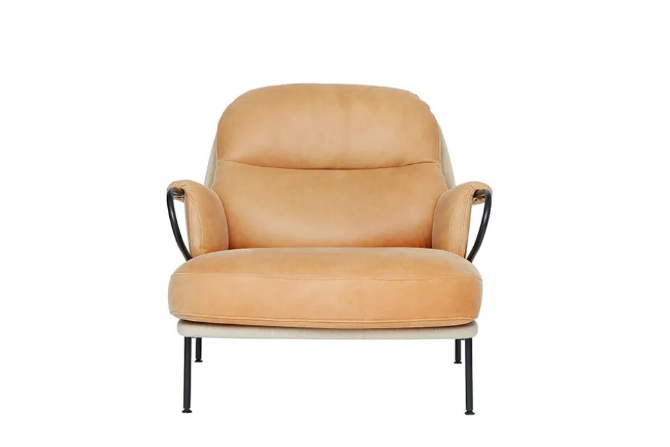 Lyra Chaise Lounge, entworfen von Andreas Engesvik, ist ein einzigartiges Möbelstück, das Komfort und Entspannung in den Mittelpunkt stellt. Die Möbel bestehen aus einer Canvas-Schale mit einem weichen Design, das perfekt zu den voluminösen Kissen passt, die für einen hervorragenden Sitzkomfort sorgen. Das Möbel ruht auf einem Sockel aus eleganten Metallrohren, die zwei Armlehnen bilden, die im Kontrast zur hellen Leinwand stehen.