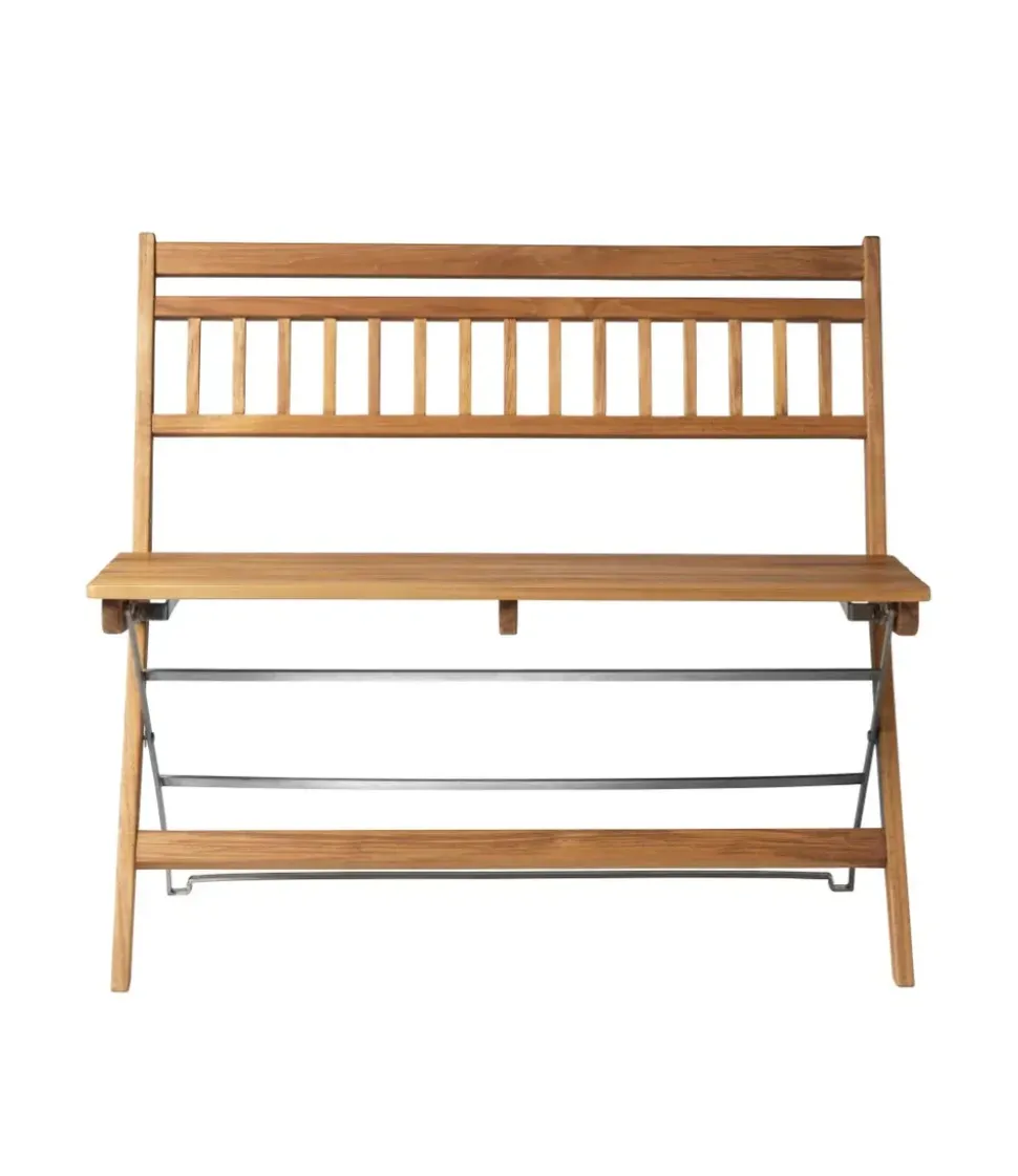 M24 – Lilleø Balcony Bench von FDB Møbler, entworfen von Thomas E. Alken, ist eine elegante und funktionale Lösung für das Leben im Freien. Die Bank ist aus Teakholz und rostfreiem Stahl gefertigt und hat einen modernen und zeitlosen Look. Die leichte, skulpturale Form macht sie ideal für kleinere Balkone oder Terrassen, wo der Platz begrenzt ist, Ästhetik und Komfort aber dennoch wichtig sind. Die Lilleø-Bank ist praktisch und lässt sich zum einfachen Verstauen zusammenklappen. Damit ist sie perfekt für Orte geeignet, an denen Funktionalität ebenso wichtig ist wie Design.