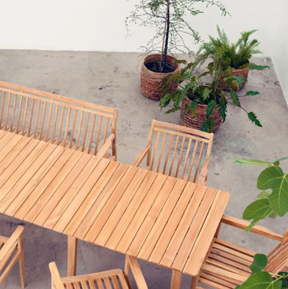 Funktionalität und Flexibilität stehen beim M4 Together Tafelaufsatz an erster Stelle. Schaffen Sie einen langgestreckten Essbereich für Sommerpartys oder intime Abendessen im Freien. Das Design sorgt für eine nahtlose Kombination von Tischen für einen kompletten und exklusiven Look. Kombinieren Sie die Tische mit den Gartenstühlen von FDB Furniture, um eine stilvolle Umgebung im Freien zu schaffen, in der Komfort und Ästhetik Hand in Hand gehen.