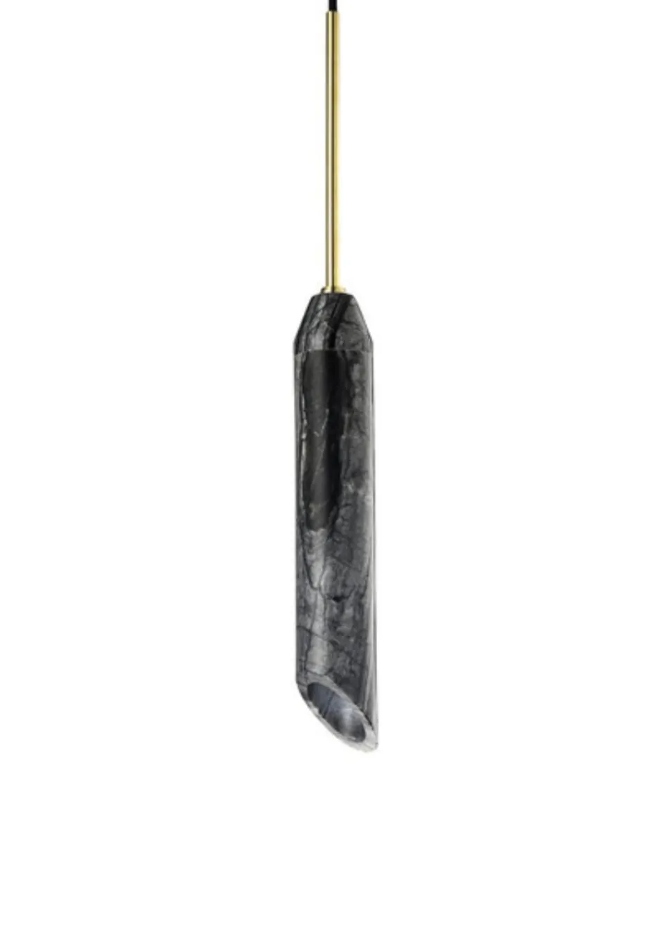 Die Marble Art Lampe ist eine elegante Lampe, die ein direktes, nach unten gerichtetes Licht abgibt. Der Korpus besteht aus einem glatt polierten Marmorzylinder mit goldener Aufhängung. Jede Lampe hat aufgrund der Beschaffenheit des Marmorsteins ein einzigartiges Muster. Die Leuchte ist in verschiedenen Varianten erhältlich.